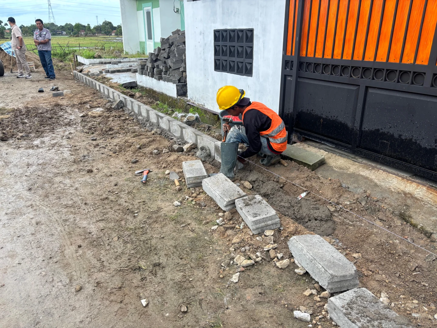 Pekerjaan di lapangan kini berfokus pada pemasangan kansteen, pemasangan paving block, dan pemadatan, agar akses warga menjadi lebih tertata, aman, dan nyaman digunakan.