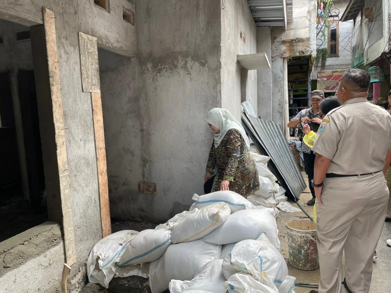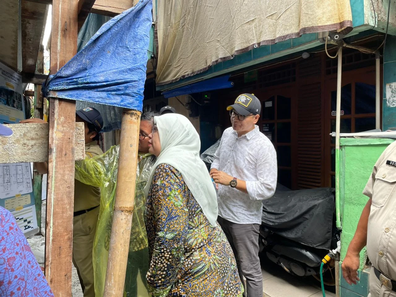 Direktur Jenderal Perumahan Perkotaan Kementerian Perumahan dan Kawasan Permukiman (PKP), didampingi oleh Balai P3KP Jawa I, melaksanakan monitoring pelaksanaan Bantuan Renovasi Gotong Royong di rumah Bapak Sapri dan Bapak Tatang yang berlokasi di RW 001 Menteng Tenggulun