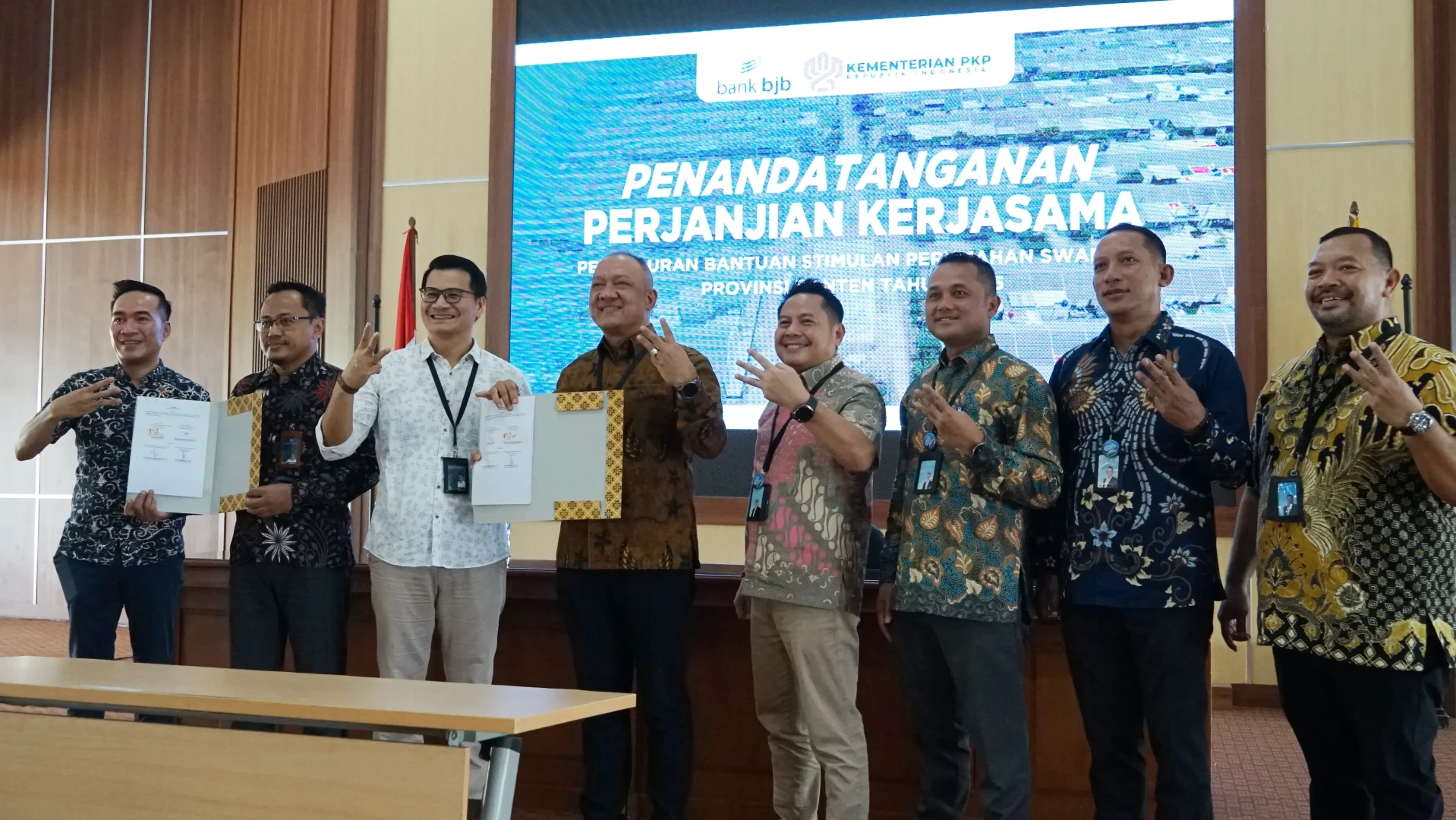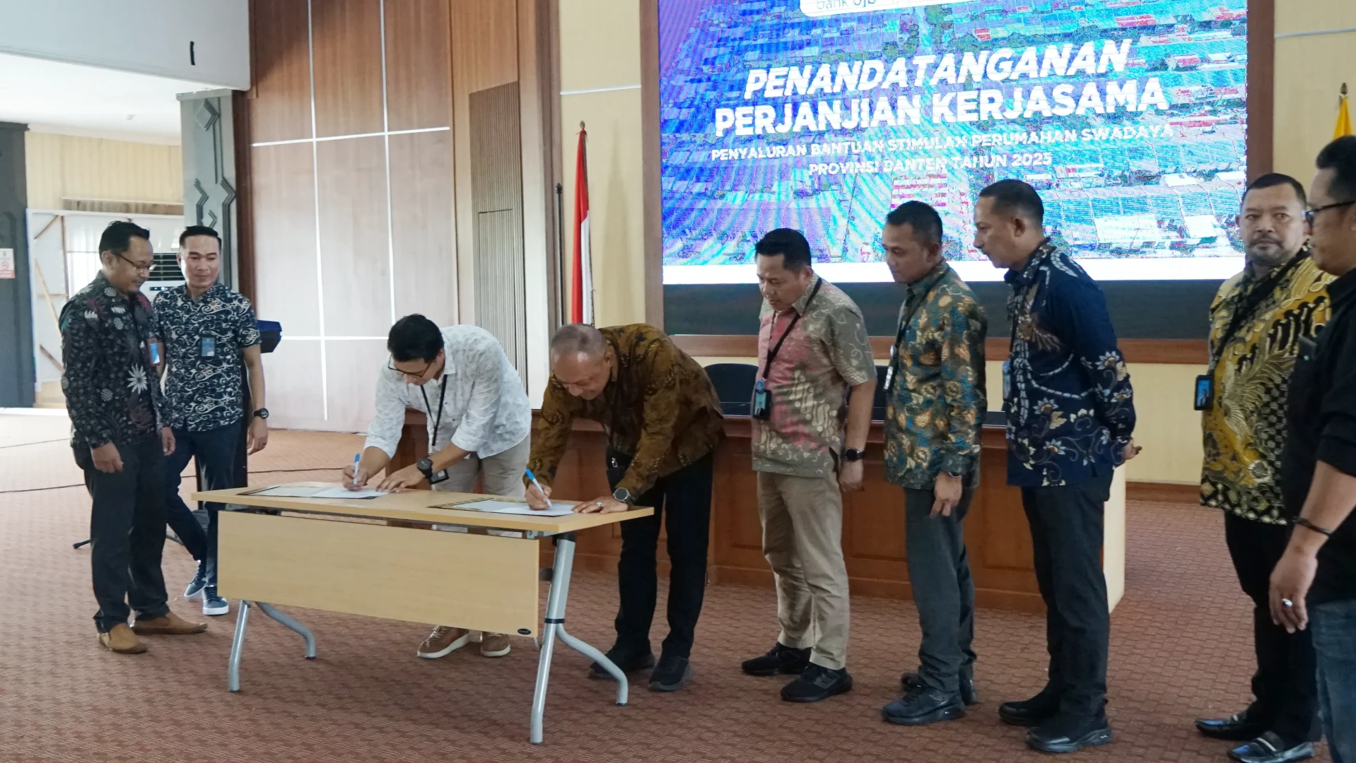 Cilegon, 28 Agustus 2025 - bertempat di Aula Kominfo Kota Cilegon Jalan Raya Merak - Tirtayasa No. 11 RT 03/RW 01 Kota Cilegon, telah dilakukan penandatangan Perjanjian Kerjasama antara Balai P3KP Jawa 1 dengan Bank BJB. Kerjasama ini dalam rangka penunjukan Bank BJB sebagai bank penyalur kegiatan Bantuan Stimulan Perumahan Swadaya (BSPS) Provinsi Banten Tahun 2025. Pada acara ini, hadir CEO Bank BJB Regional IV, Bapak Adie Arief Wibawa dan Kepala Balai P3KP Jawa I selaku penandatangan Perjanjian Kerjasama. Dalam sambutannya Kepala Balai P3KP Jawa 1 menegaskan tentang peran aktif perbankan daerah menjadi bagian penting dari keberhasilan program nasional di sektor perumahan, dan pentingnya peran rumah sebagai aset pertama, benteng keluarga, sekaligus sumber ketenangan dan kedamaian. Melalui sinergi pemerintah, perbankan, pengembang, dan masyarakat, semangat gotong royong terus digelorakan agar semakin banyak keluarga Indonesia dapat merasakan manfaat memiliki rumah yang layak, terjangkau, dan berkelanjutan.