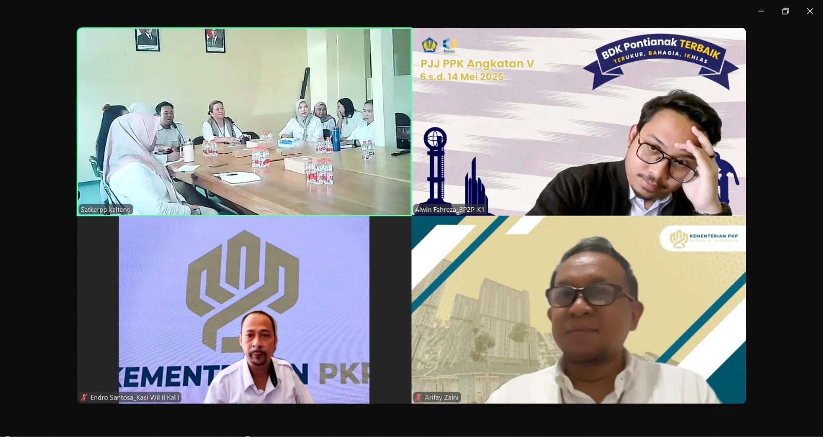Pontianak, 21 Mei 2025 — Balai Pelaksana Penyediaan Perumahan dan Kawasan Permukiman (BP3KP) Kalimantan I menggelar rapat koordinasi secara daring bersama Satuan Kerja (Satker) Pelaksana Perumahan dan Kawasan Permukiman Provinsi Kalimantan Tengah, pada Rabu (21/5). Rapat ini menjadi langkah awal penyamaan visi kerja pascapelantikan struktur baru pimpinan balai dan pejabat pembuat komitmen (PPK) oleh Kementerian Perumahan dan Kawasan Permukiman.