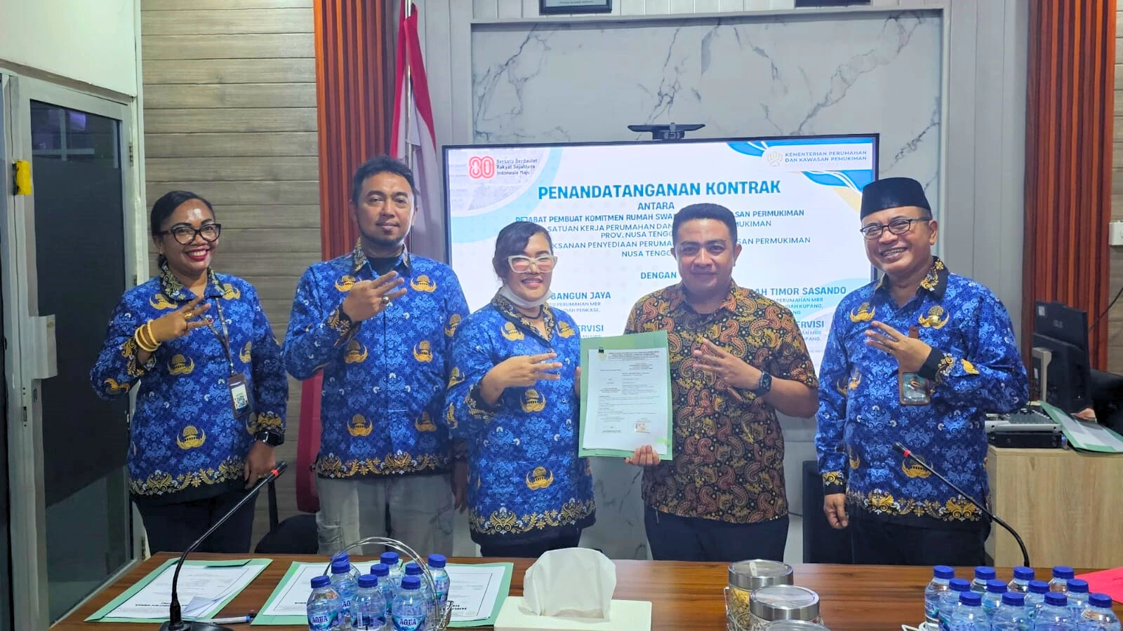 Balai Pelaksana Penyediaan Perumahan dan Kawasan Permukiman (P3KP) Nusa Tenggara II melalui Satuan Kerja Perumahan dan Kawasan Permukiman Provinsi Nusa Tenggara Timur, PPK Rumah Swadaya dan Kawasan Permukiman, melaksanakan Penandatanganan Kontrak Pekerjaan Pembangunan Prasarana, Sarana, dan Utilitas (PSU) untuk perumahan Masyarakat Berpenghasilan Rendah (MBR) pada Jumat, 17 Oktober 2025. Penandatanganan kontrak ini dilaksanakan untuk kegiatan pembangunan PSU di dua lokasi, yaitu Perumahan Petuk Indah yang berlokasi di Kabupaten Kupang dan Perumahan Bumi Penkase Indah di Kota Kupang. Kegiatan ini menjadi tahapan penting dalam rangkaian pelaksanaan program peningkatan kualitas kawasan permukiman bagi masyarakat berpenghasilan rendah di Provinsi Nusa Tenggara Timur. Penandatanganan kontrak dilakukan antara PPK Rumah Swadaya dan Kawasan Permukiman dengan Penyedia Jasa serta Konsultan Supervisi pembangunan PSU. Melalui penandatanganan ini, seluruh pihak yang terlibat diharapkan dapat menjalankan tugas dan tanggung jawab sesuai dengan ketentuan yang telah disepakati. Kegiatan ini sekaligus menegaskan komitmen Balai P3KP Nusa Tenggara II dalam memastikan pelaksanaan pekerjaan berjalan tepat mutu, tepat waktu, dan sesuai spesifikasi teknis, sehingga hasil pembangunan infrastruktur permukiman dapat memberikan manfaat nyata bagi masyarakat. Dengan terlaksananya penandatanganan kontrak ini, diharapkan pembangunan PSU pada kedua perumahan tersebut dapat berjalan lancar serta mendukung terwujudnya lingkungan hunian yang layak, aman, dan nyaman bagi masyarakat di Kota dan Kabupaten Kupang.