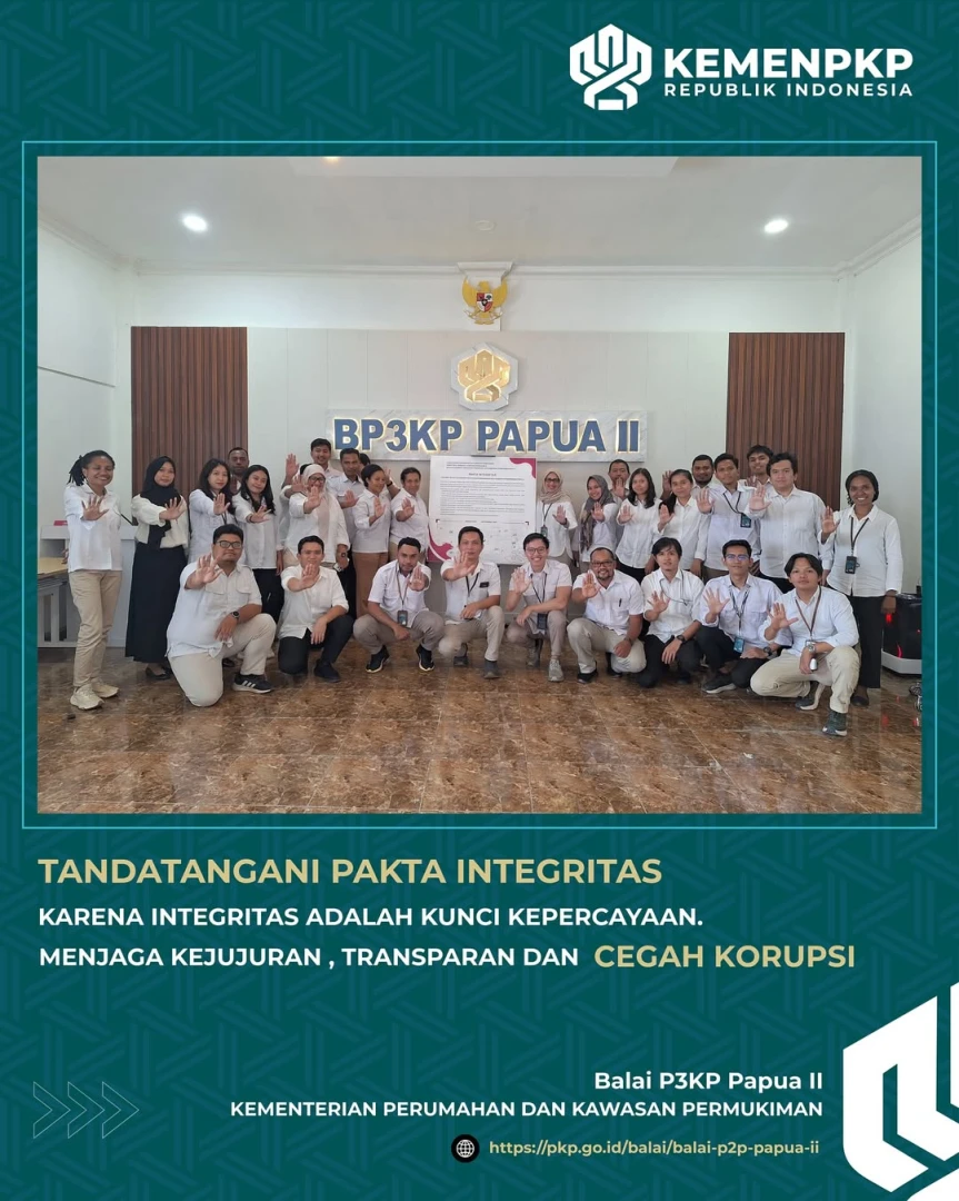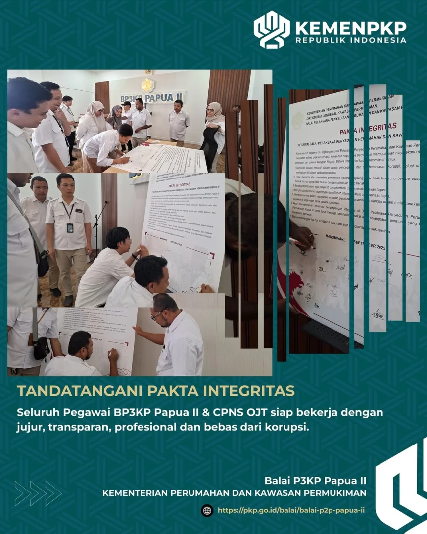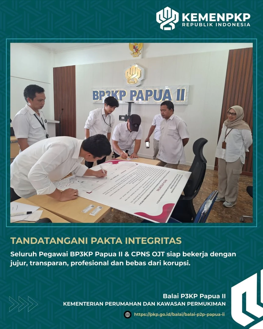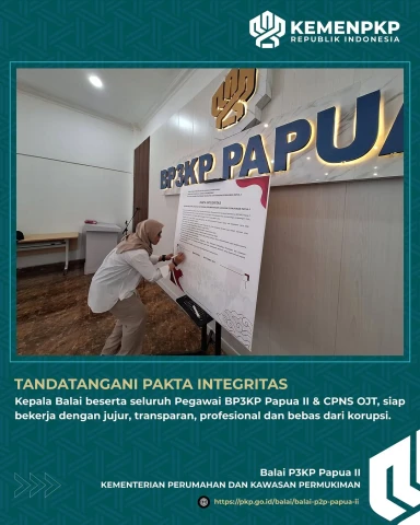 Halo #SahabatPKP , di awal September ini seluruh pegawai di lingkungan Balai Pelaksana Penyediaan Perumahan dan Kawasan Permukiman Papua II termasuk CPNS yang sedang OJT, telah melaksanakan sebuah komitmen bersama dengan menandatangani Pakta Integritas.