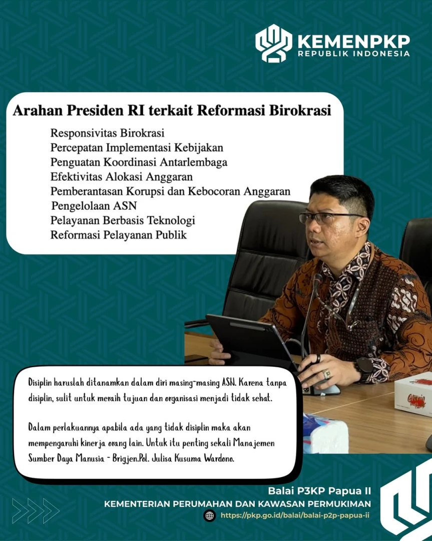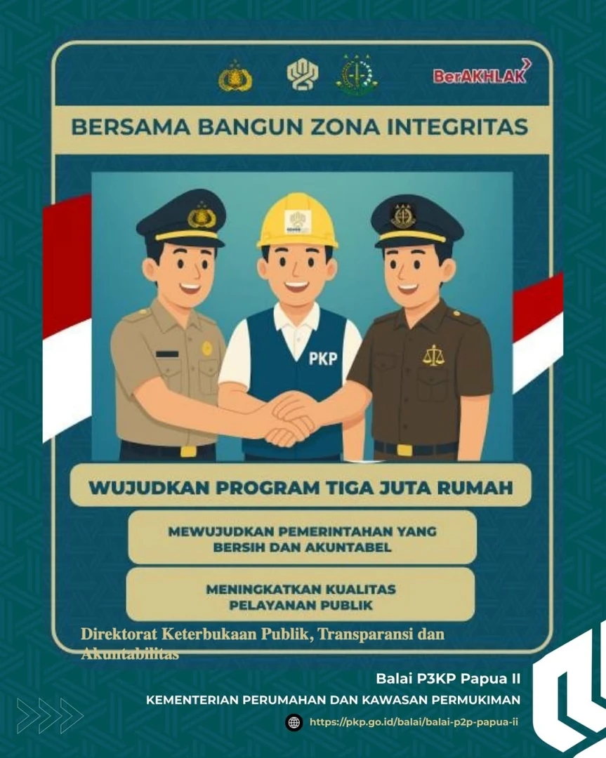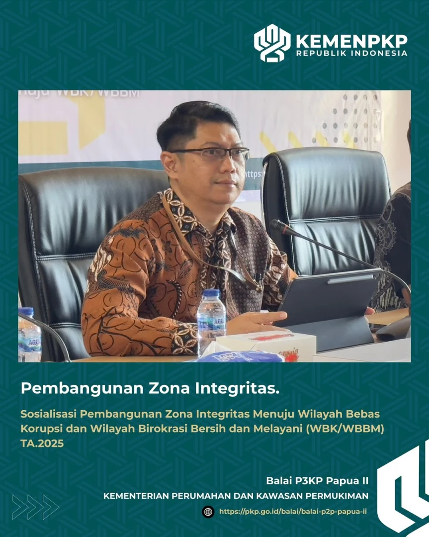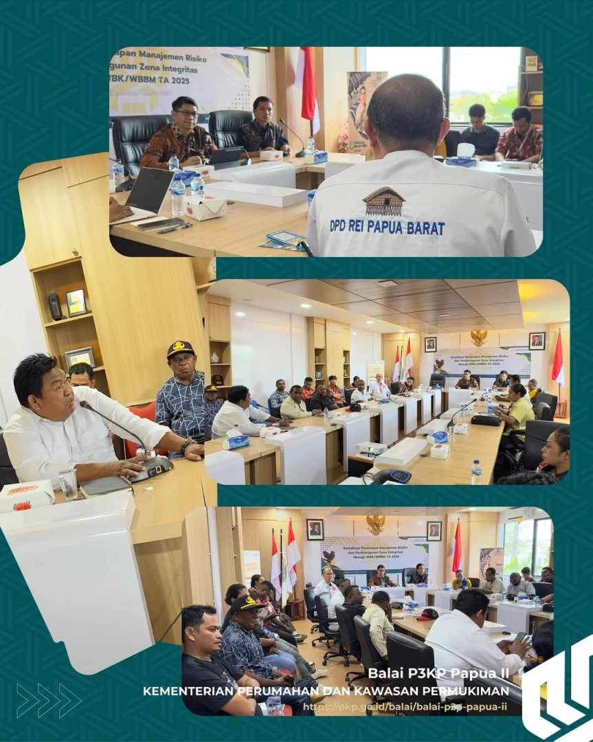 Kota Sorong, Jumat 31 Oktober 2025. BP3KP Papua II menyelenggarakan Sosialisasi Pembangunan Zona Integritas Menuju Wilayah Bebas Korupsi dan Wilayah Birokrasi Bersih dan Melayani (WBK/WBBM) dan Sosialisasi Penanganan Pelaporan Dugaan Pelanggaran melalui Whisle Blowing System di Kementerian PKP.