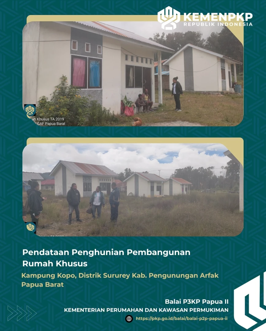 Kepala Seksi Wilayah II BP3KP Papua II Second Mical S. Maria E. Worabai, S.T bersama staf melaksanaka Monitoring Pendataan Penghunian Pembangunan Rumah Khusus bagi Masyarakat Penghasilan Rendah (MBR) TA. 20219 di Kampung Kopo, Distrik Sururey Kabupaten Pengunungan Arfak Papua Barat.