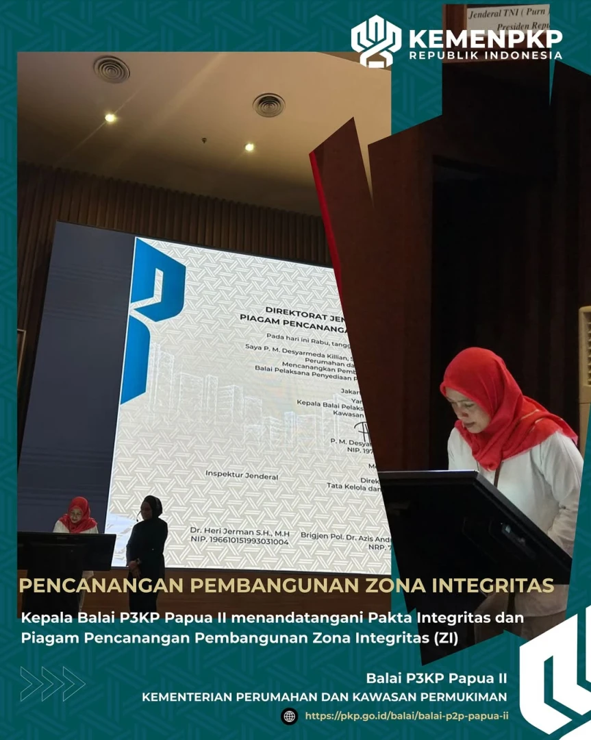 Pada kesempatan ini, Kepala Balai Pelaksana Penyediaan Perumahan dan Kawasan Permukiman Papua II P.M. Desyarmeda Killian, S.T, M.Si dan seluruh Kepala Balai P3KP turut menandatangani Piagam Pencanangan Pembangunan Zona Integrita dan Pakta Integritas sebagai bentuk komitmen nyata.
