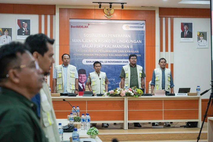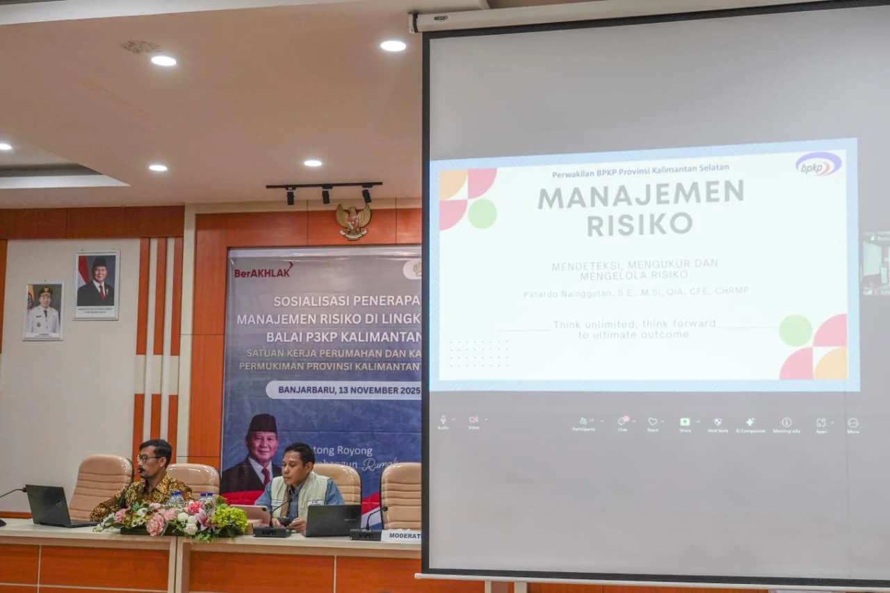 Balai P3KP Kalimantan II bersama Satuan Kerja PKP Kalimantan Selatan, melaksanakan acara Sosialisasi Penerapan Manajemen Risiko di Lingkungan Balai P3KP Kalimantan II Satker PKP Kalsel di Kantor Dinas Perkim Prov. Kalsel, Kota Banjarbaru. Kamis, 13 November 2025.