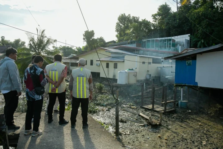 Kepala Balai P3KP Kalimantan II Anggoro Putro, Kepala Satuan Kerja PKP Kalimantan Utara Juan Nugraha dan Tim Satker Kaltara melakukan kunjungan rencana pembangunan sanitasi di Kota Tarakan, Kalimantan Utara. Senin, 28 Oktober 2025.