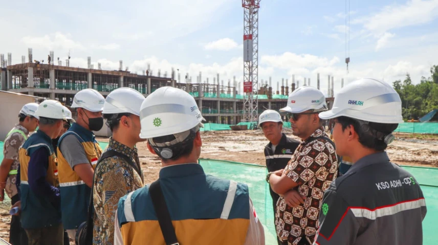 Kepala Balai Pelaksana Penyediaan Perumahan dan Kawasan Permukiman (BP3KP) Kalimantan II Mustofa Otfan, melakukan pengecekan pengerjaan pembangunan Rumah Susun Bagi MBR Relokasi Terdampak di IKN. Selasa, 03 Februari 2026.