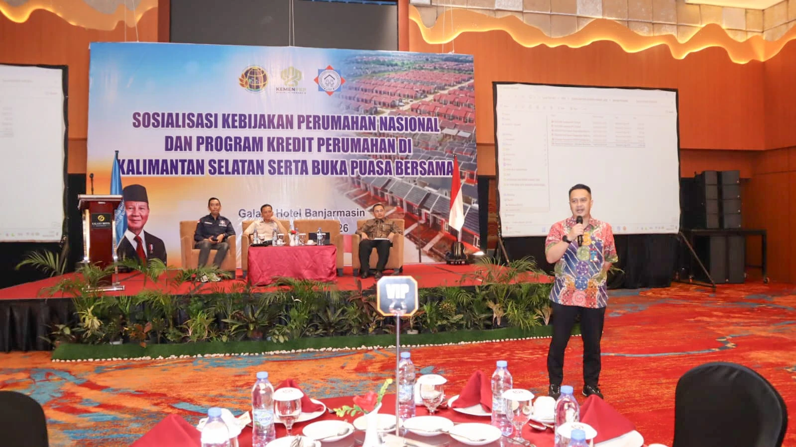 Dalam rangka percepatan program pembangunan perumaham nasional khususnya di Provinsi Kalimantan Selatan, DPP Asosiasi Pengembang Perumahan dan Permukiman Seluruh Indonesia (APERSI) bersama DPD APERSI Kalsel menggandeng Kementerian Perumahan dan Kawasan Permukiman, menyelenggarakan kegiatan Sosialisasi Kebijakan Perumahan Nasional dan Sosialisasi Program Kredit Program Perumahan di Galaxy Hotel, Kota Banjarmasin, Kalimantan Selatan. Rabu, 04 Maret 2026.