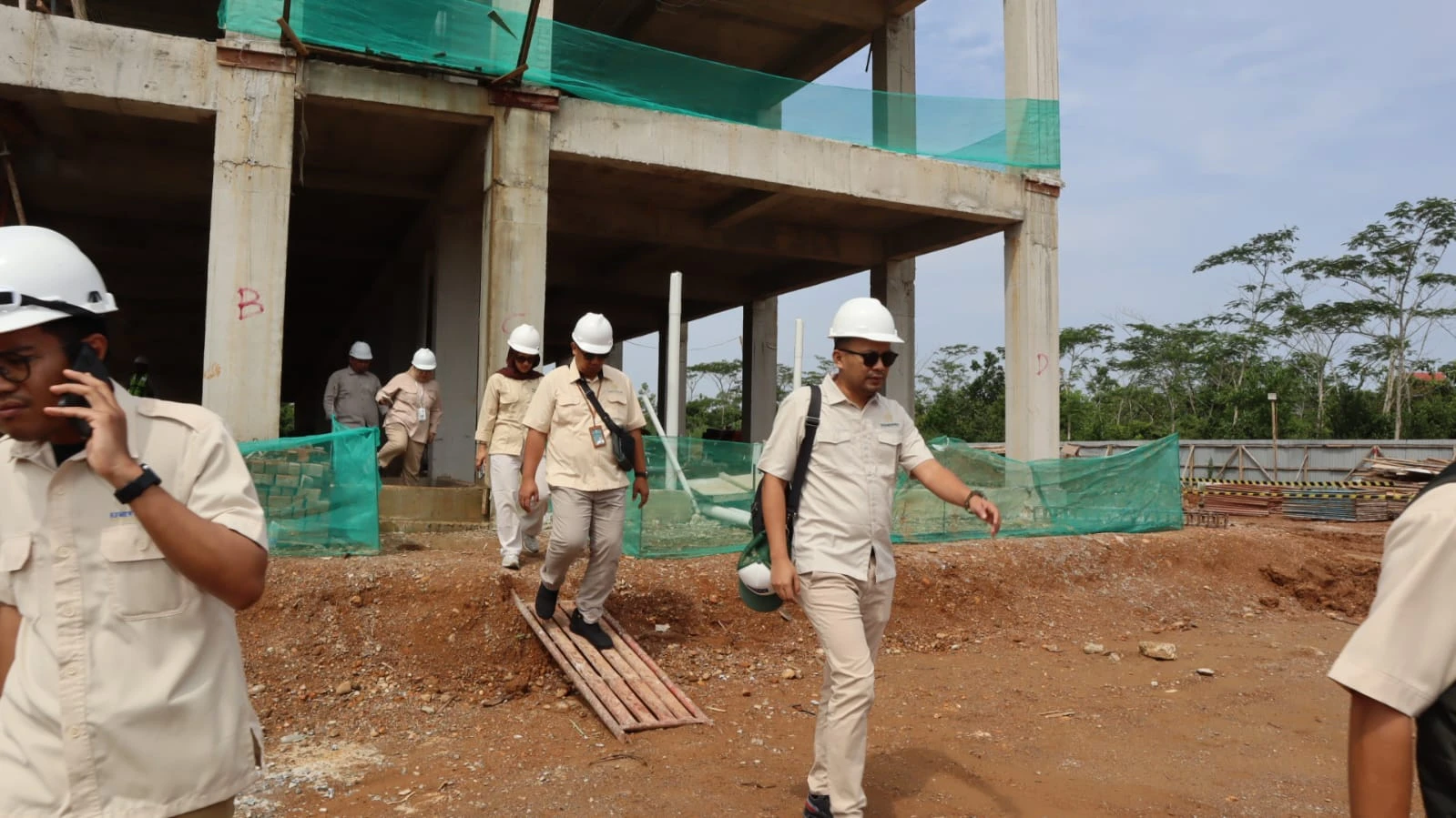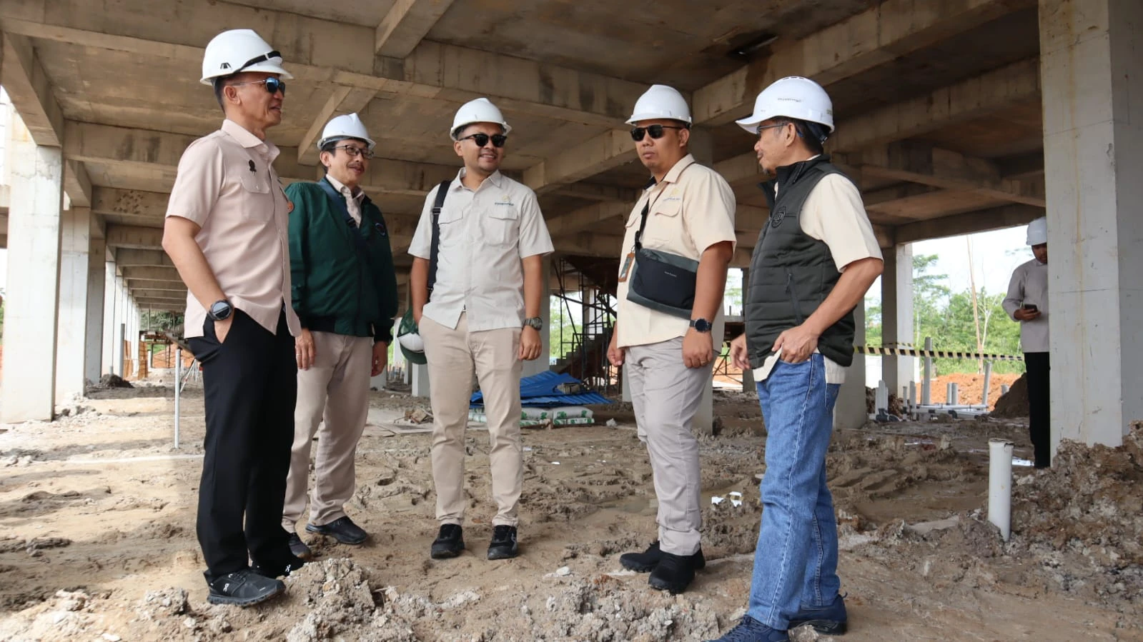Kepala Balai P3KP Kalimantan II Mustofa Otfan bersama Kepala Satker PKP Kalsel Mohammad Radjiman Ododay dan Kasie Wilayah II Wayan Harwin Artawijaya mendampingi kunjungan Direktur Pembiayaan Perumahan Perdesaan Kementerian PKP Raden An An Andri Hikmat dan Direktur Pengendalian Risiko dan Pencegahan Korupsi Kementerian PKP Budi Satria Wiguna, ke proyek pembangunan Rumah Susun Kejaksaan Tinggi Kalimantan Selatan di Kota Banjarbaru, Kalimantan Selatan. Rabu, 04 Maret 2026.