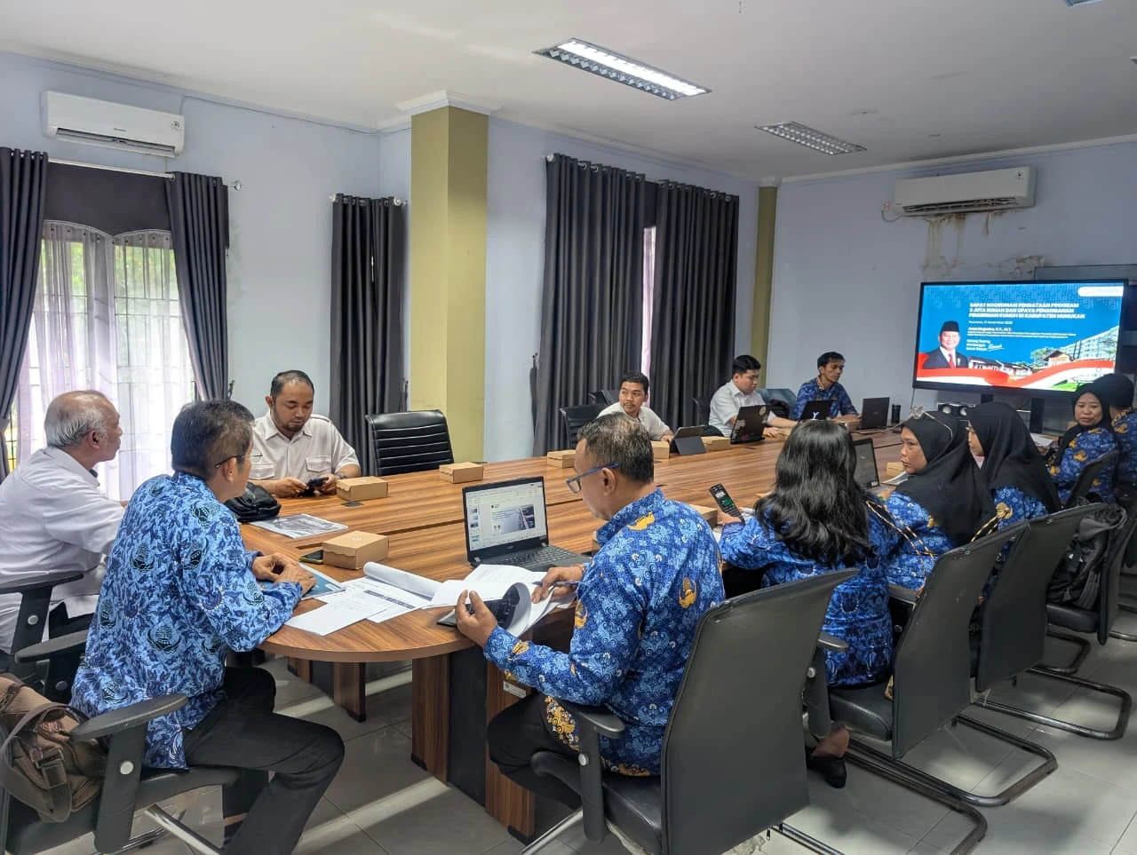 Kadis Perkim Abdul Halid Nunukan memaparkan ada dua usulan utama : Sei Bolong dan Sei Menteri, termasuk tantangan data DTSEN, status lahan, kondisi permukiman pesisir, hingga tingginya biaya material di daerah terpencil seperti Krayan.