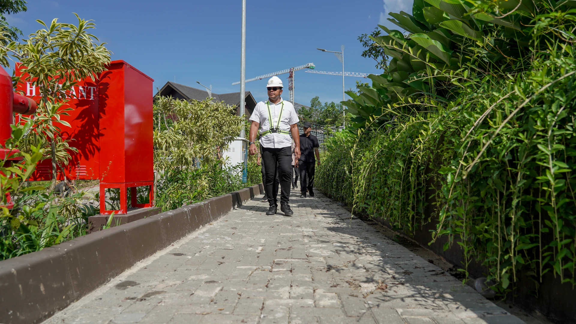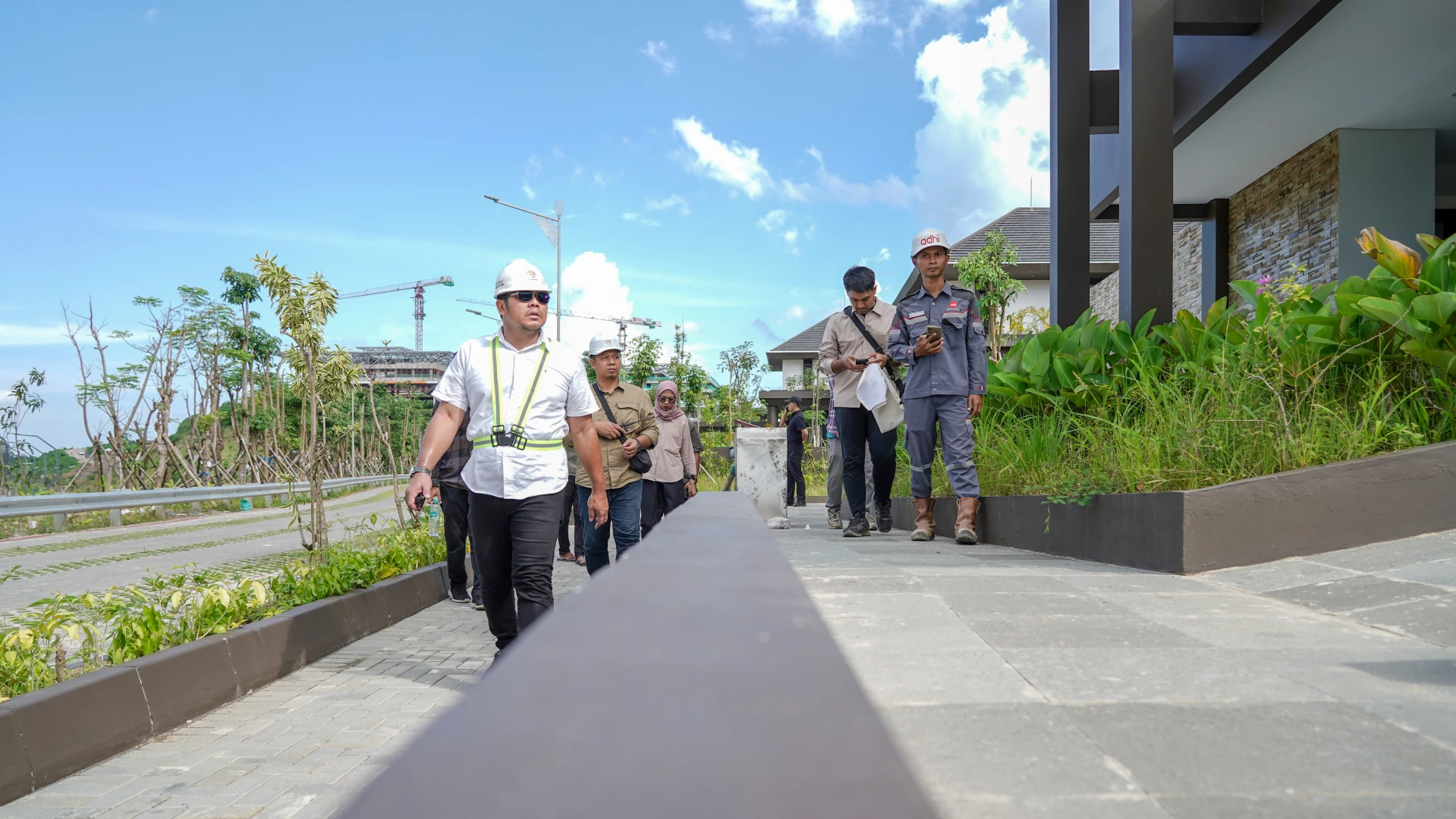 Kepala Balai Pelaksana Penyediaan Perumahan dan Kawasan Permukiman (BP3KP) Kalimantan II Anggoro Putro, bersama Kasie Wilayah II Wayan Harwin Artawijaya, dan Pejabat Pembuat Komitmen (PPK) Satker Kaltim Bayu Krisna Suryanata, melakukan monitoring dan pengecekan kondisi taman dan kawasan di area Rumah Tapak Jabatan Menteri (RTJM), Ibu Kota Negara (IKN) Nusantara, Kamis, 03 Juli 2025.