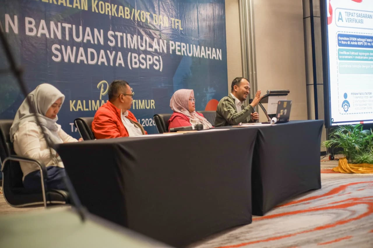 Dalam rangka pelaksanaan Bantuan Stimulan Perumahan Swadaya (BSPS) Tahun 2026, Balai P3KP Kalimantan II melalui Satuan Kerja PKP Kalimantan Timur melaksanakan pembekalan Koordinator Kabupaten/Kot (Korkab/Kot) dan Tenaga Fasilitator Lapangan (TFL) di Kota Samarinda, Kalimantan Timur pada Senin hingga Selasa 09 Maret 2026.