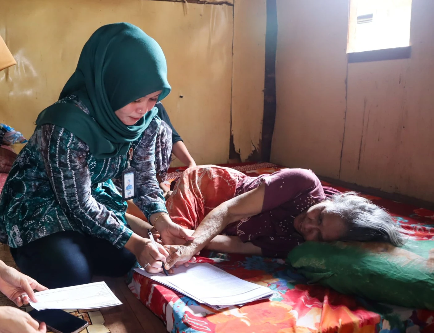 Usai melakukan penandatanganan, Wayan Harwin bersama tim Satker PKP Kalsel mendatangi hunian penerima BSPS.