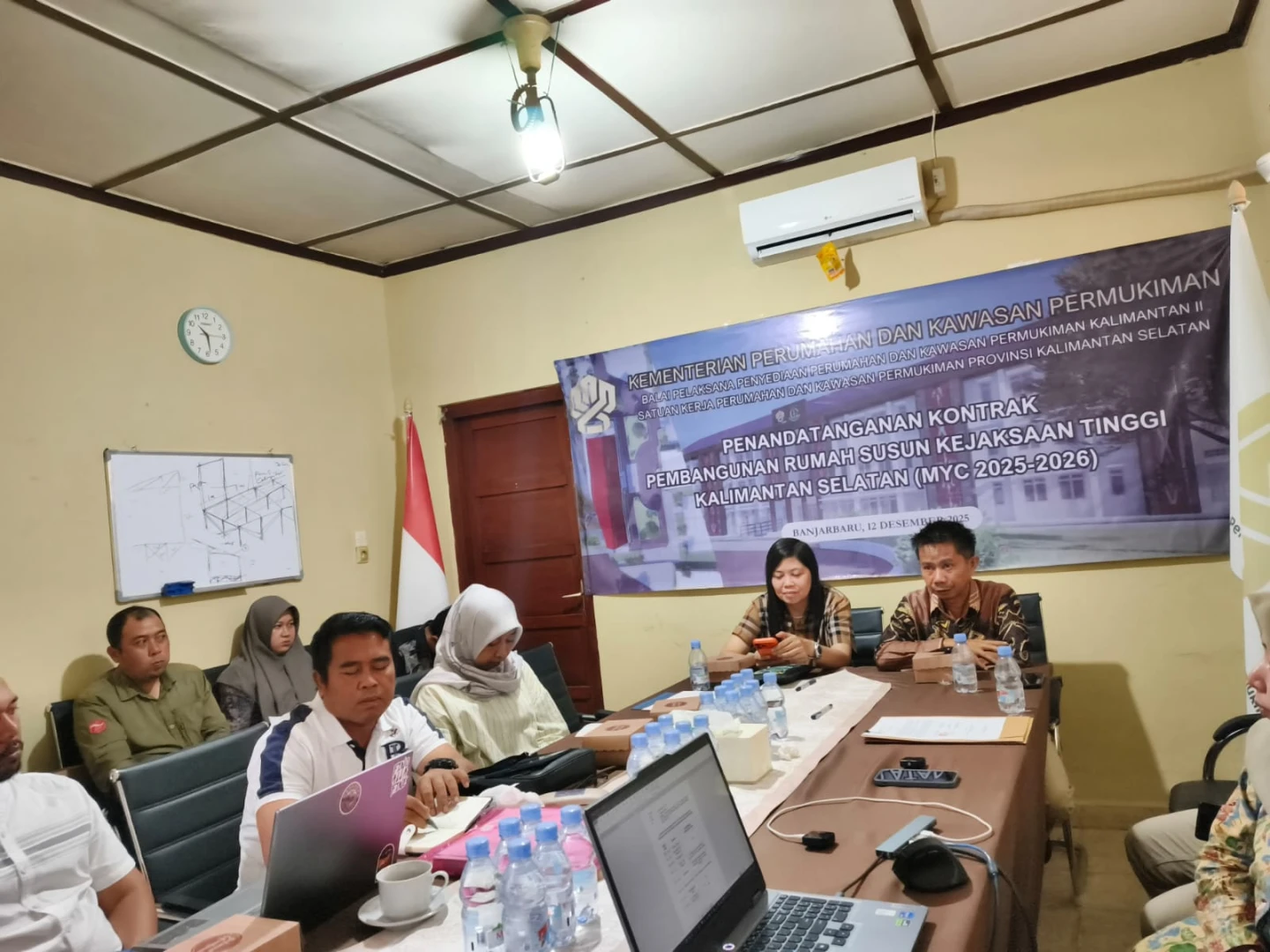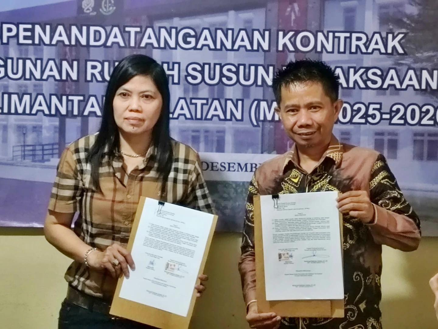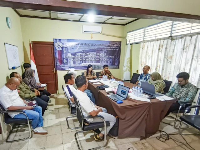 Satuan Kerja Perumahan dan Kawasan Permukiman (PKP) Kalimantan Selatan (Kalsel) melaksanakan Penandatanganan Kontrak Pembangunan Rumah Susun Kejaksaan Tinggi Kalimantan Selatan di Kantor Satker PKP Kalsel, Kota Banjarbaru. Jumat, 12 Desember 2025.