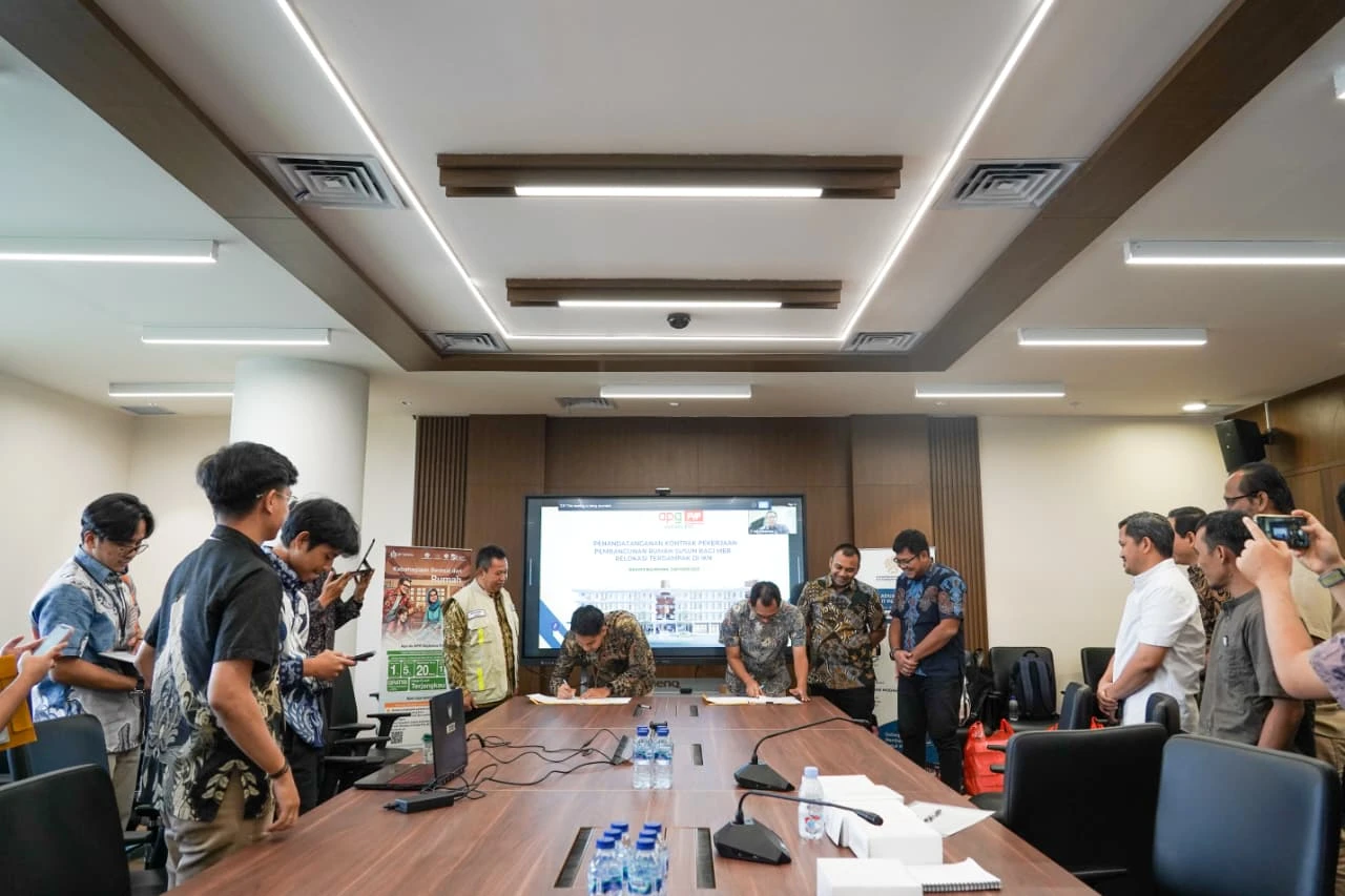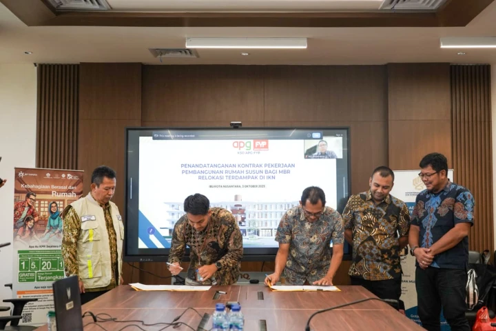 Satuan Kerja (Satker) PKP Kalimantan Timur (Kaltim) melaksanakan Penandatanganan Kontrak Rumah Susun Bagi MBR Relokasi Terdampak di IKN, di Ruang Rapat Gedung Kemenko 3, IKN. Jumat, 03 Oktober 2025.