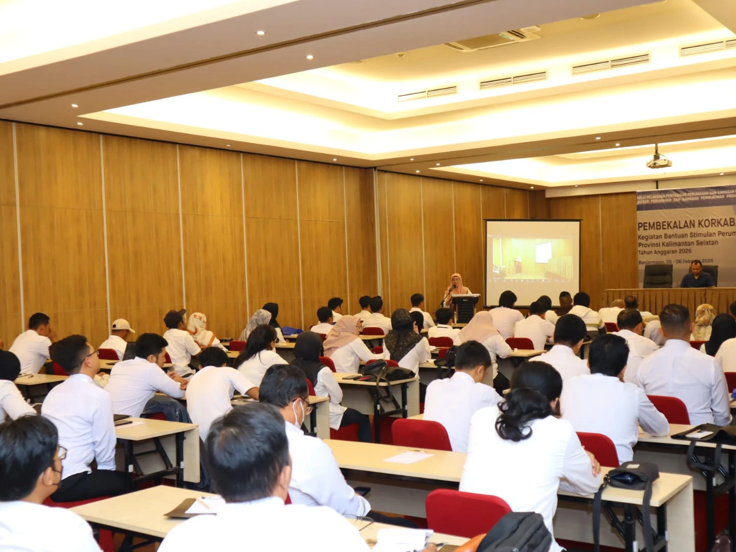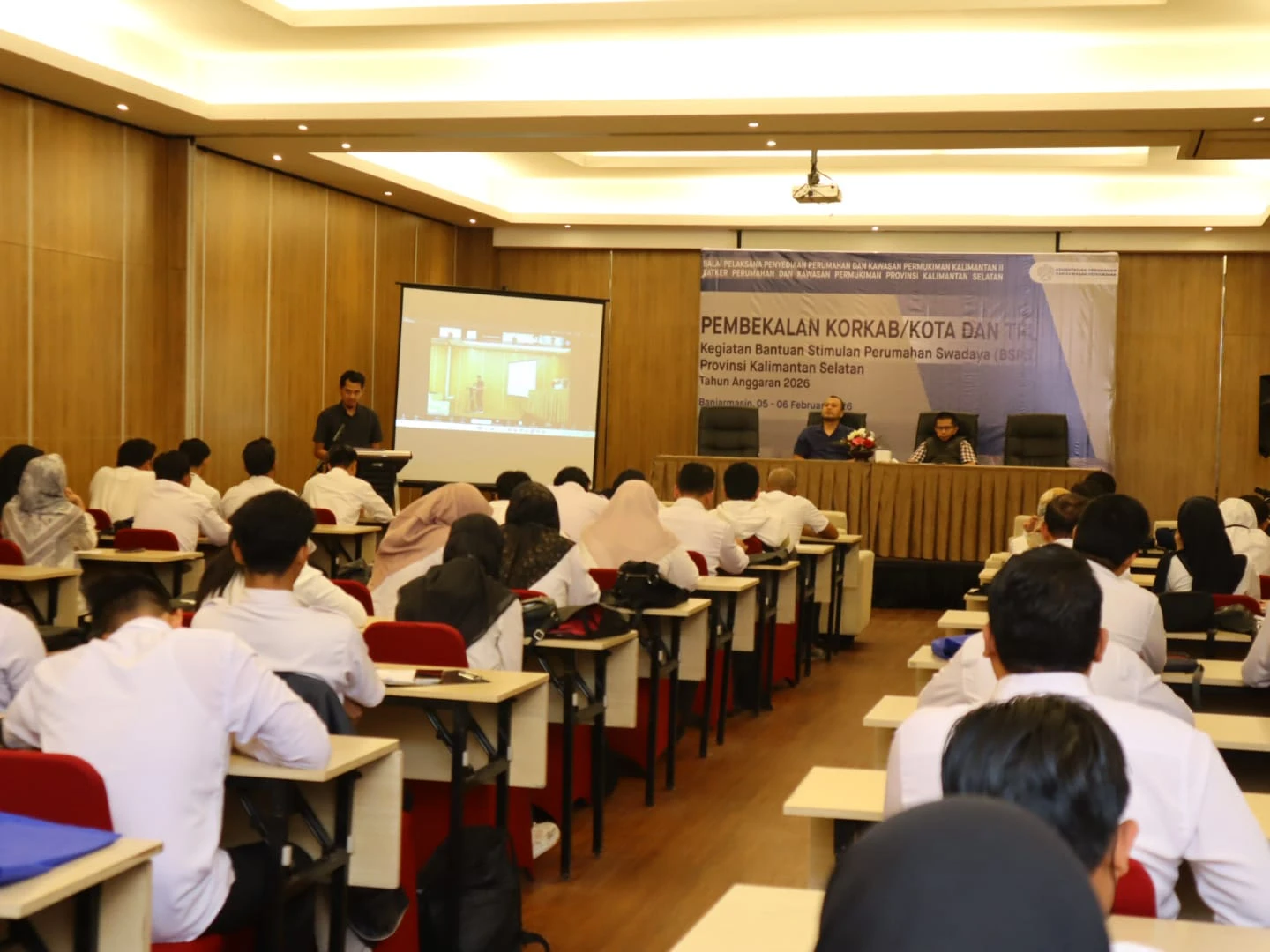 Demi mewujudkan pelaksanaan Bantuan Stimulan Perumahan Swadaya (BSPS) 2026 tepat waktu, tepat sasaran, tepat penggunaan, dan akuntabel, 57 peserta tersebut mengikuti pembekalan Korkab/Kota dan TFL di Banjarmasin Kamis, 5 Maret 2025.