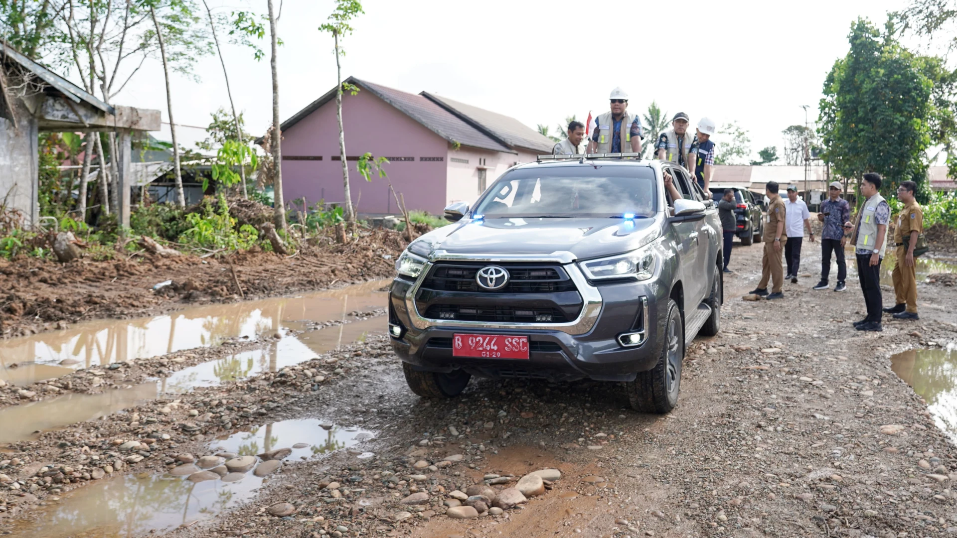 Saat ini, lokasi tersebut dalam tahap pengerjaan pengupasan, pembersihan dan urugan jalan. Usai mengecek lokasi, Anggoro Putro menyampaikan perlu dilakukan pemadatan dan pematangan lahan agar akses material bangunan ke lokasi pembangunan mudah dilalui.