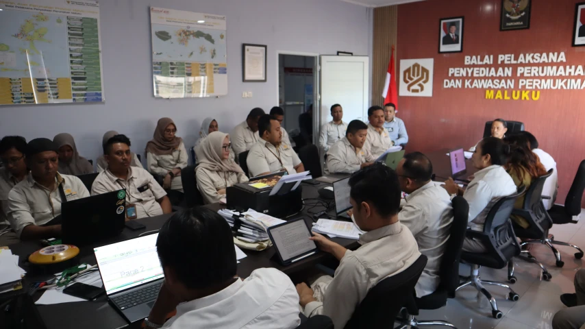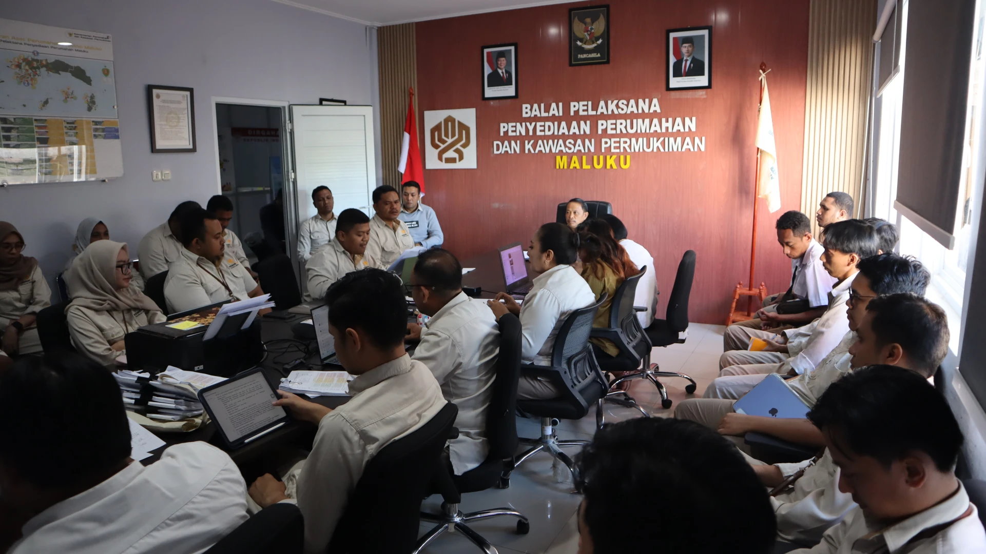Ambon, Kompu - Dalam rangka meningkatkan efektivitas pelaksanaan tugas dan penguatan kedisiplinan aparatur sipil negara, Balai Pelaksana Penyediaan Perumahan dan Kawasan Permukiman (P3KP) Maluku melaksanakan pertemuan internal yang berlangsung di ruang rapat Kantor Balai P3KP Maluku, Rabu (25/02/2026). Kegiatan tersebut dipimpin langsung oleh Kepala Balai P3KP Maluku dan diikuti oleh seluruh pejabat struktural serta staf di lingkungan balai.