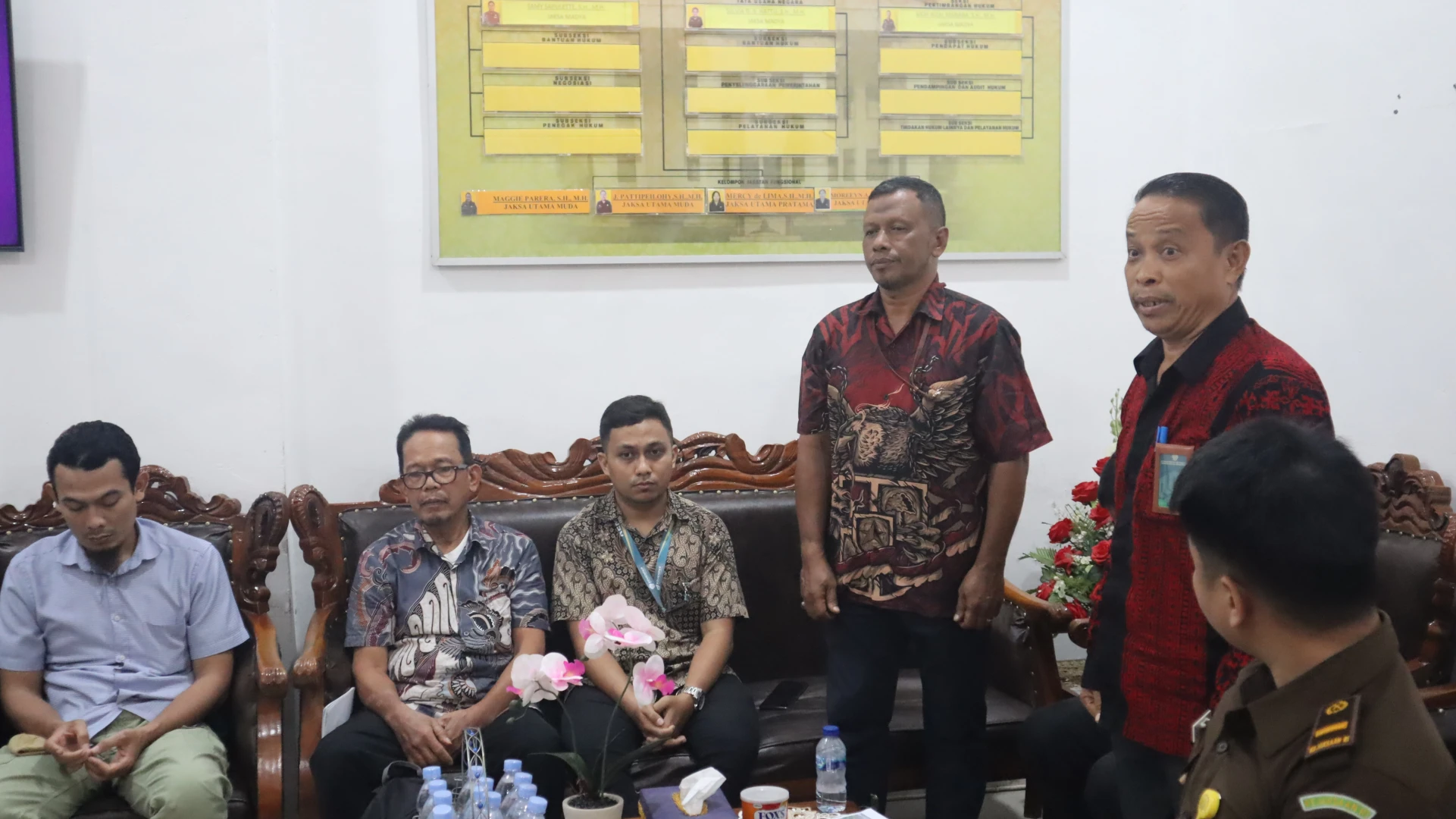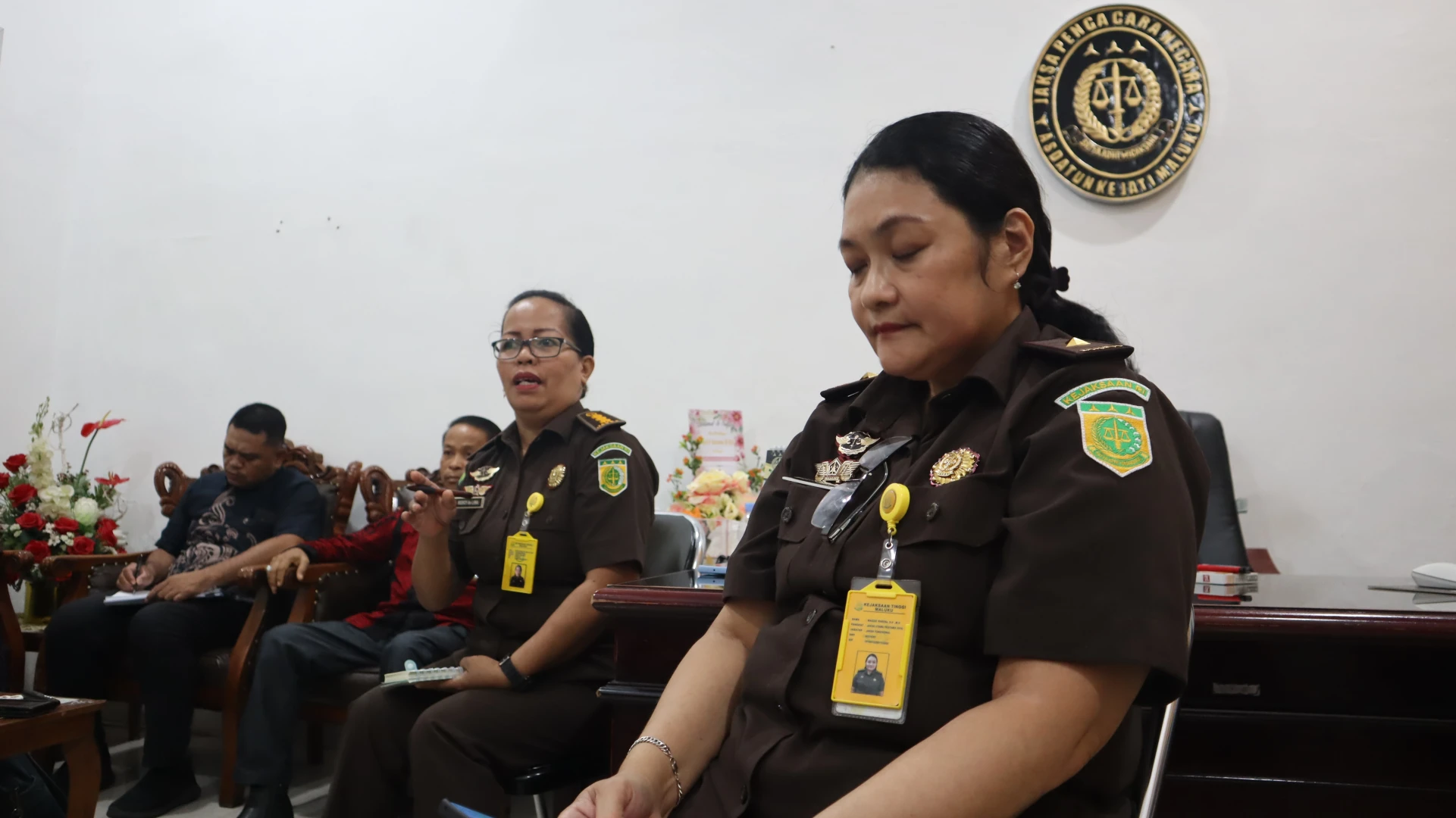 Sementara itu, dari pihak Kejaksaan Tinggi Maluku hadir Jaksa Pengacara Negara (JPN) di bawah koordinasi Asisten Perdata dan Tata Usaha Negara (Asdatun), yakni Raden Sudaryono, S.H., M.H selaku Asisten Perdata dan Tata Usaha Negara Kejaksaan Tinggi Maluku; Sami Sapulete, S.H., M.H selaku Kepala Seksi Perdata; Moh. Rizal Manaba, S.H selaku Kepala Seksi PH; Moreeyn H. Palijama, S.H., M.H selaku Jaksa Pengacara Negara; Juliana Pattpeilohy, S.H., M.H selaku Jaksa Pengacara Negara; Maggie Parera, S.H., M.H selaku Jaksa Pengacara Negara; Merci G. De Lima, S.H., M.H selaku Jaksa Pengacara Negara; bersama Firli Wijaksana, S.H dan Muhammad Ash Shiddieqy selaku Staf Datun.