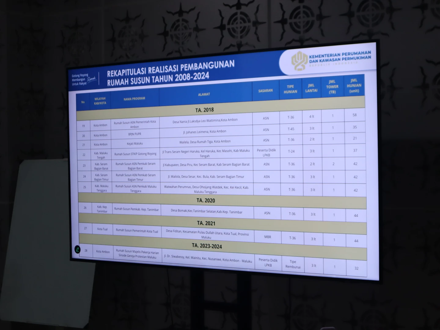 Kegiatan ini dihadiri oleh kepala-kepala Dinas Perumahan dan Kawasan Permukiman se-Provinsi Maluku, baik dari Provinsi Maluku, Kota Ambon, maupun kabupaten-kota lainnya di wilayah Maluku baik secara langsung maupun virtual serta hadir pula beberapa stake-holder terkait lainnya.