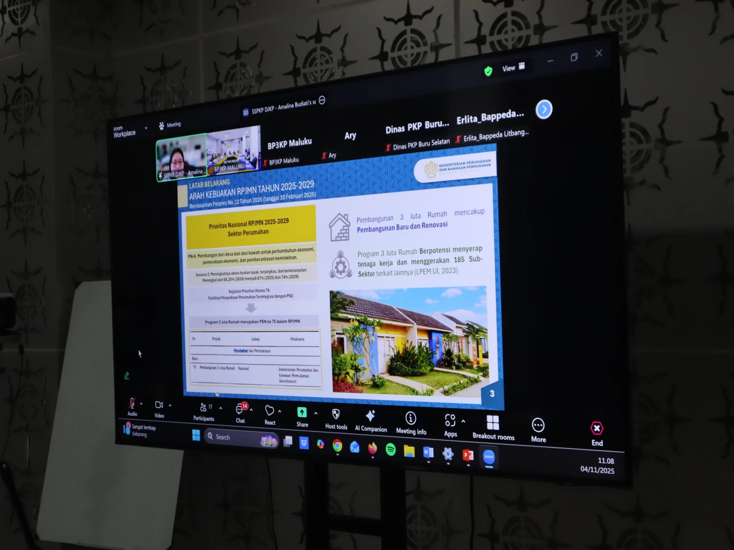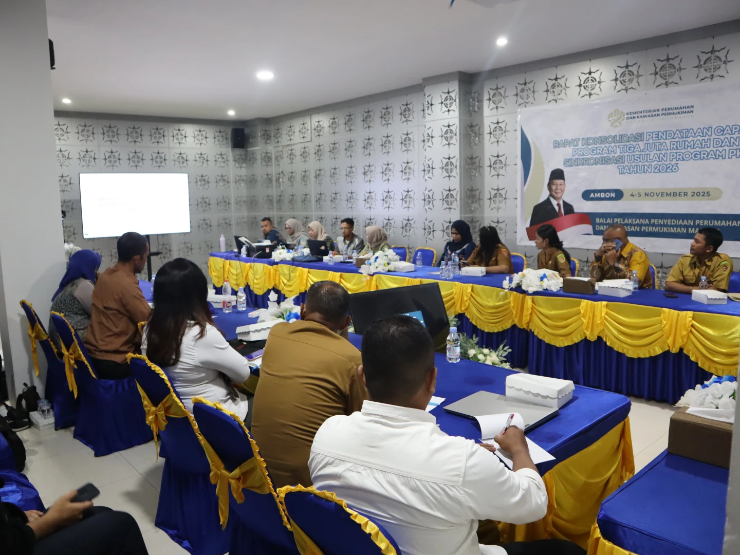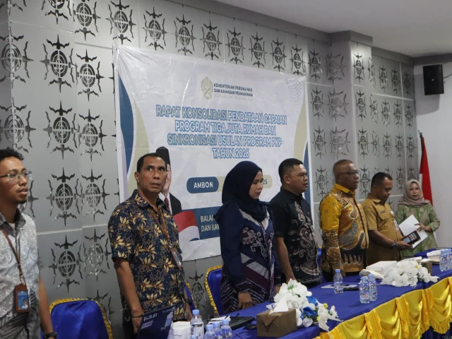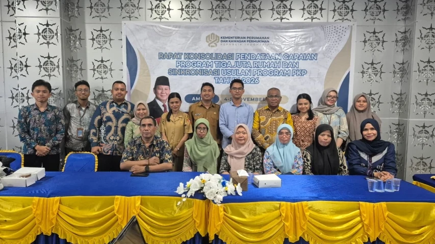 Ambon,Kompu - Balai Pelaksana Penyediaan Perumahan dan Kawasan Permukiman (BP3KP) Maluku menggelar Rapat Konsolidasi Pendataan Capaian Program Tiga Juta Rumah dan Sinkronisasi Usulan Program Perumahan dan Kawasan Permukiman Tahun 2026 yang bertempat di ruang rapat Siwalima Kantor Balai Wilayah Sungai (BWS) Maluku, pada Selasa (04/11/2025).