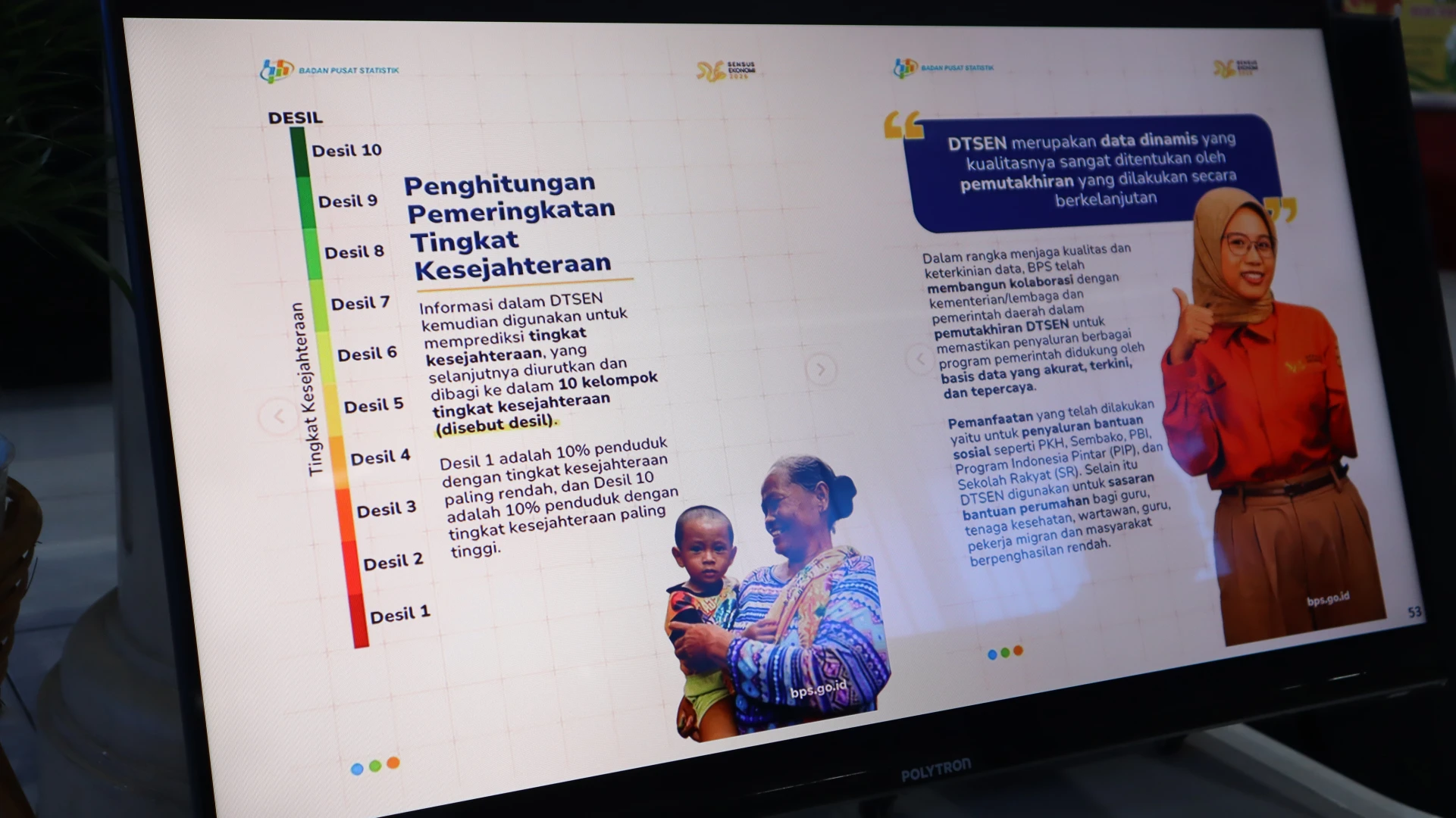Ia menjelaskan bahwa Data Terpadu Sosial Ekonomi Nasional (DTSEN) merupakan salah satu sumber data penting yang memuat berbagai informasi terkait kondisi sosial dan ekonomi masyarakat. Data tersebut dapat dimanfaatkan oleh berbagai kementerian dan lembaga dalam menentukan sasaran program bantuan pemerintah.