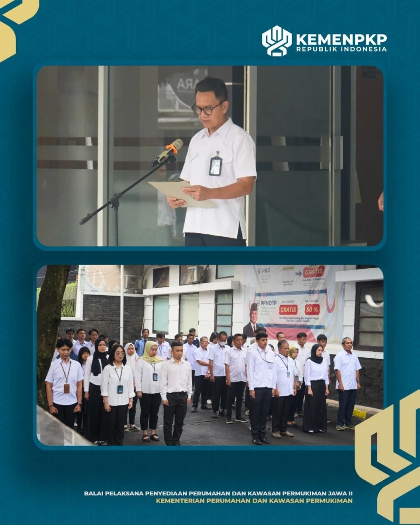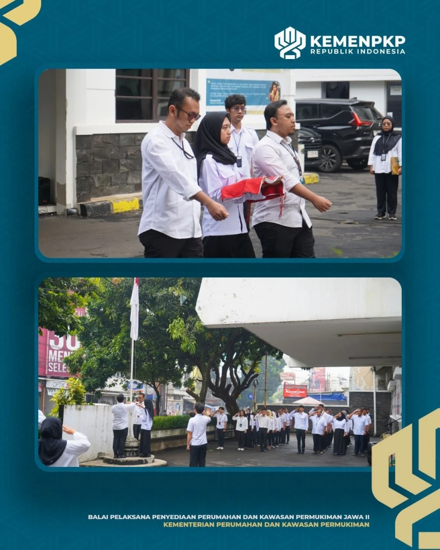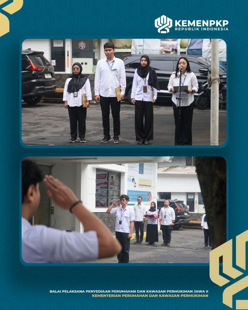 Balai Pelaksana Penyediaan Perumahan dan Kawasan Permukiman (BP3KP) Jawa II menyelenggarakan upacara bendera dalam rangka memperingati Hari Sumpah Pemuda ke-97 Tahun 2025 dengan tema “Pemuda Pemudi Bergerak, Indonesia Bersatu.” Upacara berlangsung khidmat di halaman kantor BP3KP Jawa II, diikuti oleh seluruh pegawai sebagai bentuk penghormatan terhadap semangat persatuan dan perjuangan para pemuda Indonesia(28/10).