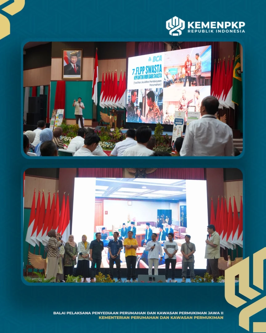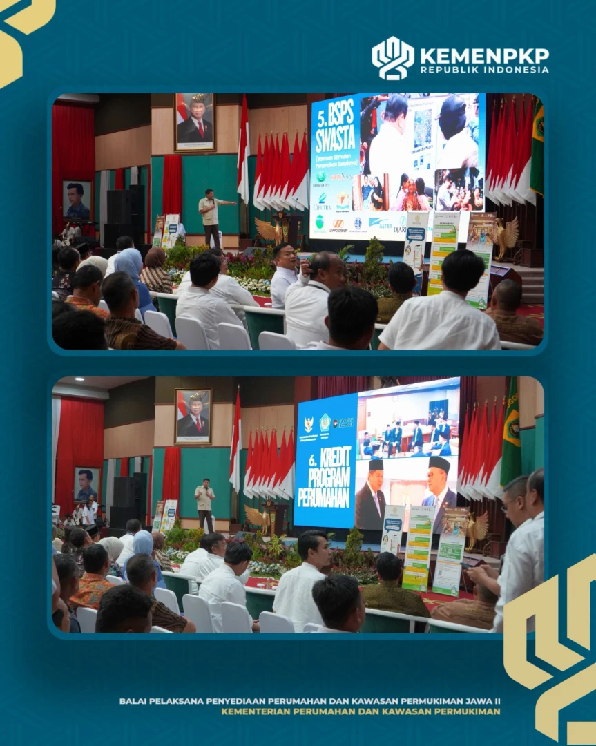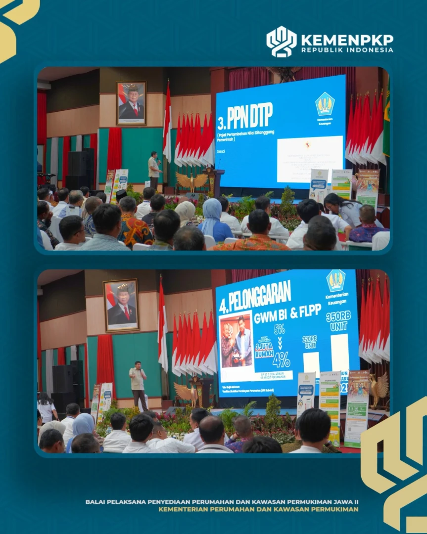Menteri Perumahan dan Kawasan Permukiman (PKP) Maruarar Sirait, didampingi Bupati Bogor Rudy Susmanto dan Sekretaris Daerah Provinsi Jawa Barat Herman Suryatman, menghadiri Sosialisasi Kredit Usaha Rakyat (KUR) Perumahan dan Fasilitas Likuiditas Pembiayaan Perumahan (FLPP) di Aula Tegar Beriman, Cibinong, Kabupaten Bogor, Senin (3/10/2025). Kegiatan ini melibatkan berbagai pihak seperti SMF, PNM, BTN, BJB, BRI, BNI, IPB, dan Himperra, sebagai bentuk sinergi dalam memperluas akses pembiayaan perumahan bagi masyarakat berpenghasilan rendah serta memperkuat pertumbuhan ekonomi daerah.