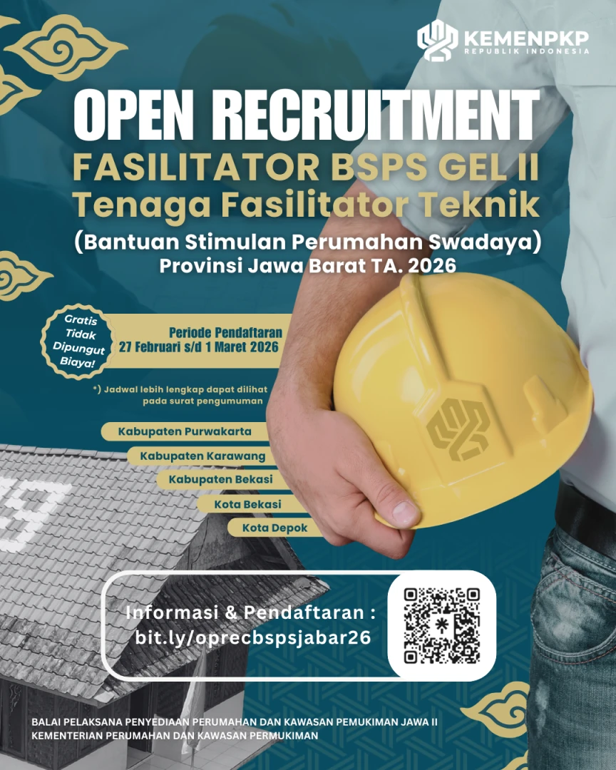 Sehubungan dengan masih dibutuhkannya Tenaga Fasilitator Lapangan (TFL) Teknik, kami membuka kembali 𝐎𝐩𝐞𝐧 𝐑𝐞𝐜𝐫𝐮𝐢𝐭𝐦𝐞𝐧𝐭 𝐓𝐅𝐋 𝐓𝐞𝐤𝐧𝐢𝐤 untuk mendukung pelaksanaan Program BSPS Tahun Anggaran 2026.