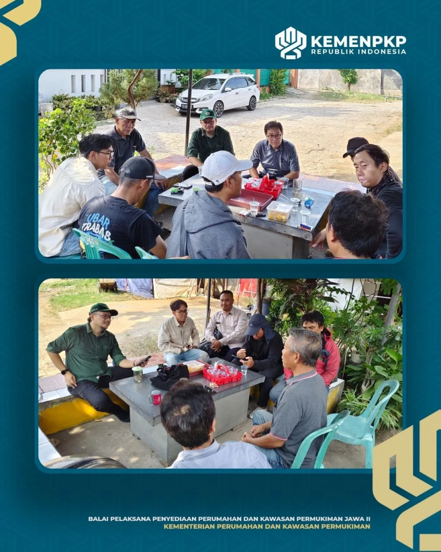 Kegiatan Pengawasan dan Pengendalian (WASDAL) dalam rangka persiapan pelaksanaan peningkatan kualitas kawasan kumuh dan sanitasi di Desa Jatimulya, Kabupaten Bekasi (16/10). Kegiatan ini dihadiri oleh Kepala Balai P3KP Jawa II, Kasatker PKP Prov. Jawa Barat, RT, RW, dan Tim Teknis Pelaksana Kumuh untuk memastikan kesiapan lapangan sebelum pekerjaan dimulai.