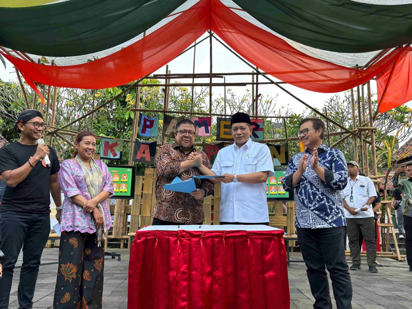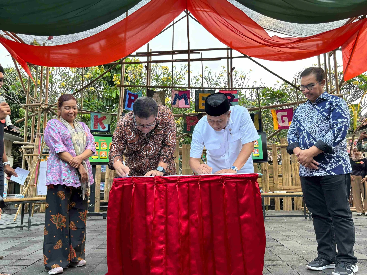 Kementerian Perumahan dan Kawasan Permukiman bersama Kementerian Koperasi resmi menandatangani Memorandum of Understanding (MoU) Sinergi Tugas dan Fungsi dalam Pemberdayaan Koperasi Desa/Kelurahan Merah Putih pada Festival Pamer Kampung Kota di Plaza Ngasem, Yogyakarta (13/7/2025).