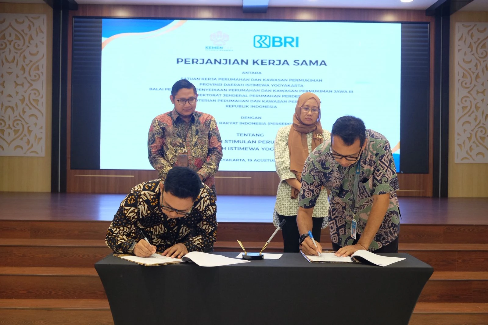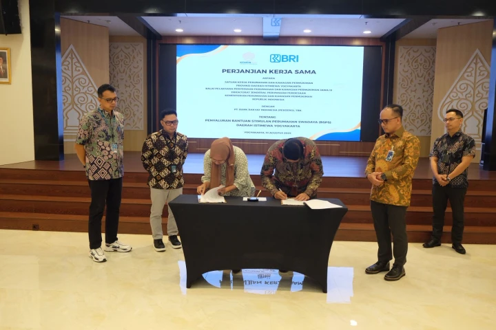 Satuan Kerja Perumahan dan Kawasan Permukiman Provinsi DI. Yogyakarta resmi melaksanakan penandatanganan Perjanjian Kerja Sama (PKS) dengan Bank BRI dalam rangka penyaluran dana Program Bantuan Stimulan Perumahan Swadaya (BSPS) tahun anggaran 2025 (19/8).