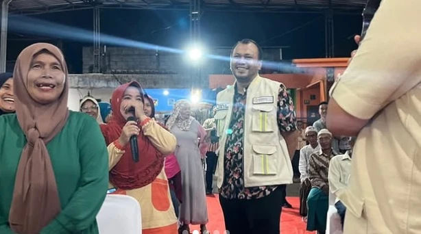 Menteri Perumahan dan Kawasan Permukiman (PKP) Maruarar Sirait (Ara) didampingi Inspektur Jenderal Kementerian PKP Heri Jerman dan Direktur Jenderal Perumahan Perkotaan Sri Haryati meninjau lokasi rencana pembangunan sanitasi rumah di kawasan kumuh Jember Kidul, Kecamatan Kaliwates, Kabupaten Jember, Sabtu malam (18/10/2025).