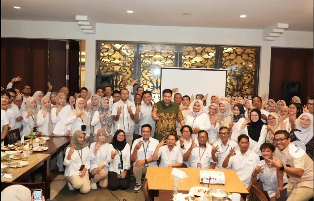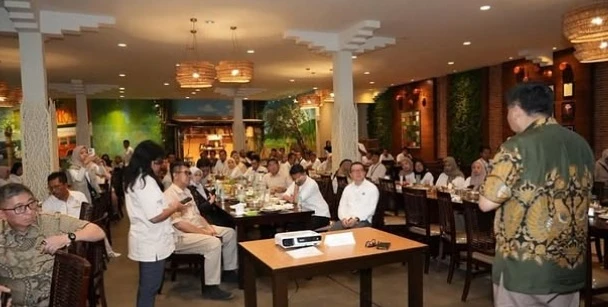 Menteri Perumahan dan Kawasan Permukiman (PKP) Maruarar Sirait (Ara) didampingi Inspektur Kementerian PKP Heri Jerman, Direktur Jenderal Perumahan Perkotaan Sri Haryati, Kepala Balai Pelaksana Penyediaan Perumahan dan Kawasan Permukiman (P3KP) Jawa IV Mustofa Oftan dan Kepala Satker Perumahan dan Permukiman Jawa Timur Shinta Dewi Astari memberikan semangat kepada seluruh pegawai BP3KP pada Rabu malam (15/10/2025).