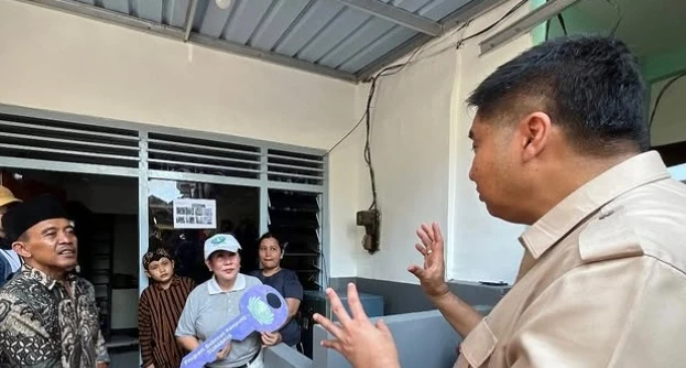 Menteri Perumahan dan Kawasan Permukiman (PKP) Maruarar Sirait (Ara) bersama Wali Kota Surabaya Eri Cahyadi meninjau pelaksanaan renovasi rumah MBR kerja sama Pemerintah dengan Yayasan Buddha Tzu Chi di Kelurahan Jagir Kecamatan Wonokromo, Kota Surabaya, Kamis (16/10/2025).