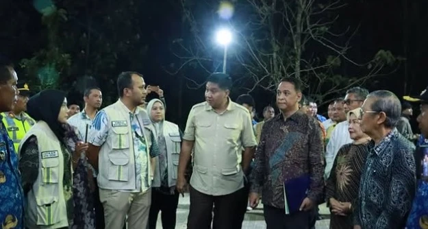 Menteri Perumahan dan Kawasan Permukiman (PKP) Maruarar Sirait (Ara) didampingi Wakil Bupati Malang Lathifah Shohib meninjau progres pembangunan Rumah Susun (Rusun) Universitas Tribhuwana Tunggadewi di Kecamatan Wagir, Kabupaten Malang, Jumat malam (17/10/2025).