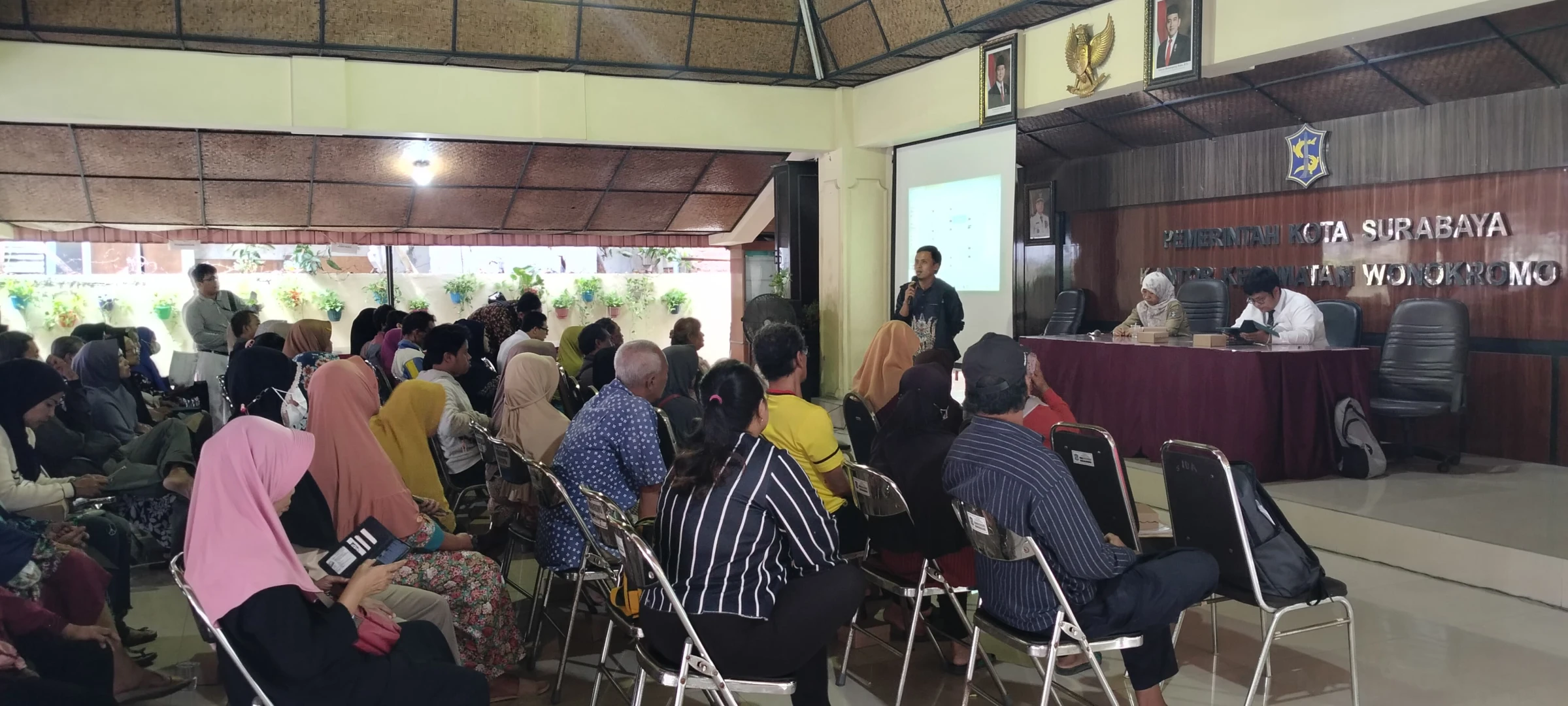 Bertempat di Graha Dwi Praja, Kantor Kecamatan Wonokromo, kegiatan sosialisasi ditujukan kepada warga calon penerima manfaat dari enam kelurahan. Pada sesi pagi, sosialisasi diikuti oleh warga dari Kelurahan Jagir, Ngagel, dan Ngagelrejo, sedangkan sesi siang dihadiri oleh warga dari Kelurahan Darmo, Sawunggaling, dan Wonokromo.