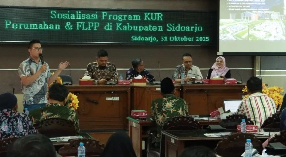 Kementerian PKP bersama BP Tapera, Bank Jatim Syariah, dan Bank BRI melaksanakan Sosialisasi Program KUR Perumahan dan FLPP di Kabupaten Sidoarjo.