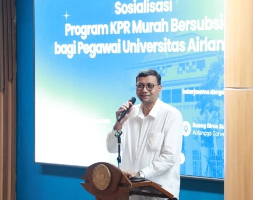 Kementerian PKP bersama BP Tapera, BP3KP Jawa IV, Bank Jatim Syariah, dan Bank BRI menggelar Sosialisasi Program KUR Perumahan dan FLPP di Universitas Airlangga (Unair). Kegiatan ini dibuka oleh Prof. Ardianto, Wakil Rektor Bidang Sumber Daya Unair, yang menegaskan komitmen universitas untuk meningkatkan kesejahteraan pegawai melalui kemudahan akses kepemilikan rumah. Turut hadir Kepala BP3KP Jawa IV Bpk. Mustofa Otfan, ST., M.M., Direktur Keuangan Unair Dr. Hamidah, S.E., M.Si., Ak., serta seluruh sivitas akademika Universitas Airlangga.