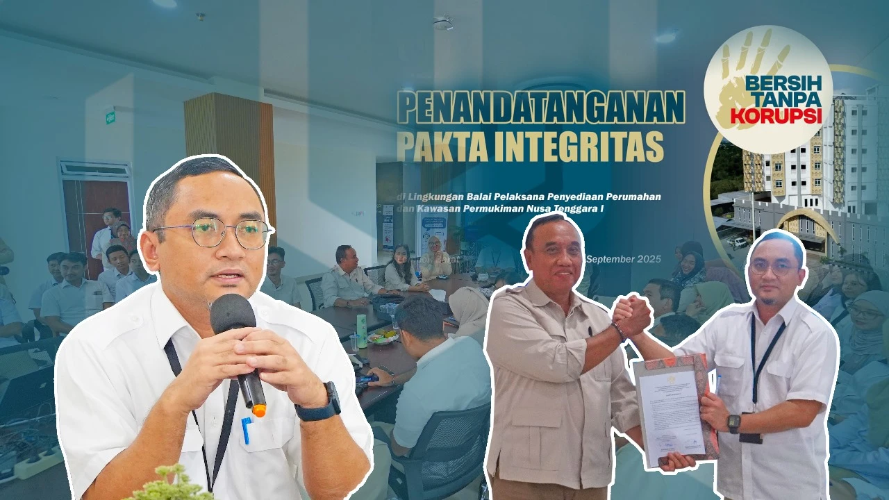 Sebagai bentuk komitmen bersama dalam pembangunan Zona Integritas, Kementerian Perumahan dan Kawasan Permukiman melalui Direktorat Jenderal Kawasan Permukiman, Balai Pelaksana Penyediaan Perumahan dan Kawasan Permukiman Nusa Tenggara I telah menggelar kegiatan Penandatanganan Pakta Integritas.