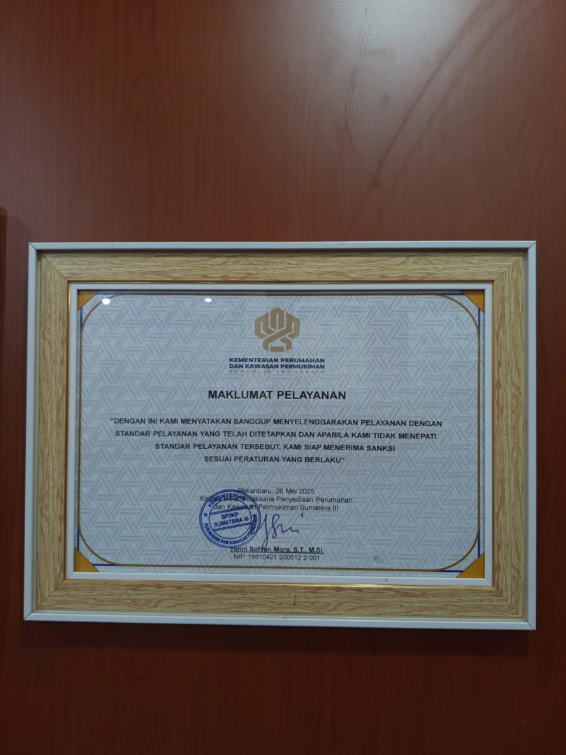 Dengan adanya penandatanganan Maklumat Pelayanan oleh Kepala Balai Pelaksana Penyediaan Perumahan Sumatera III menjadi komitmen Balai Pelaksana Penyediaan Perumahan Sumatera III dalam memberikan pelayanan terbaik sesuai standar pelayanan yang ada.