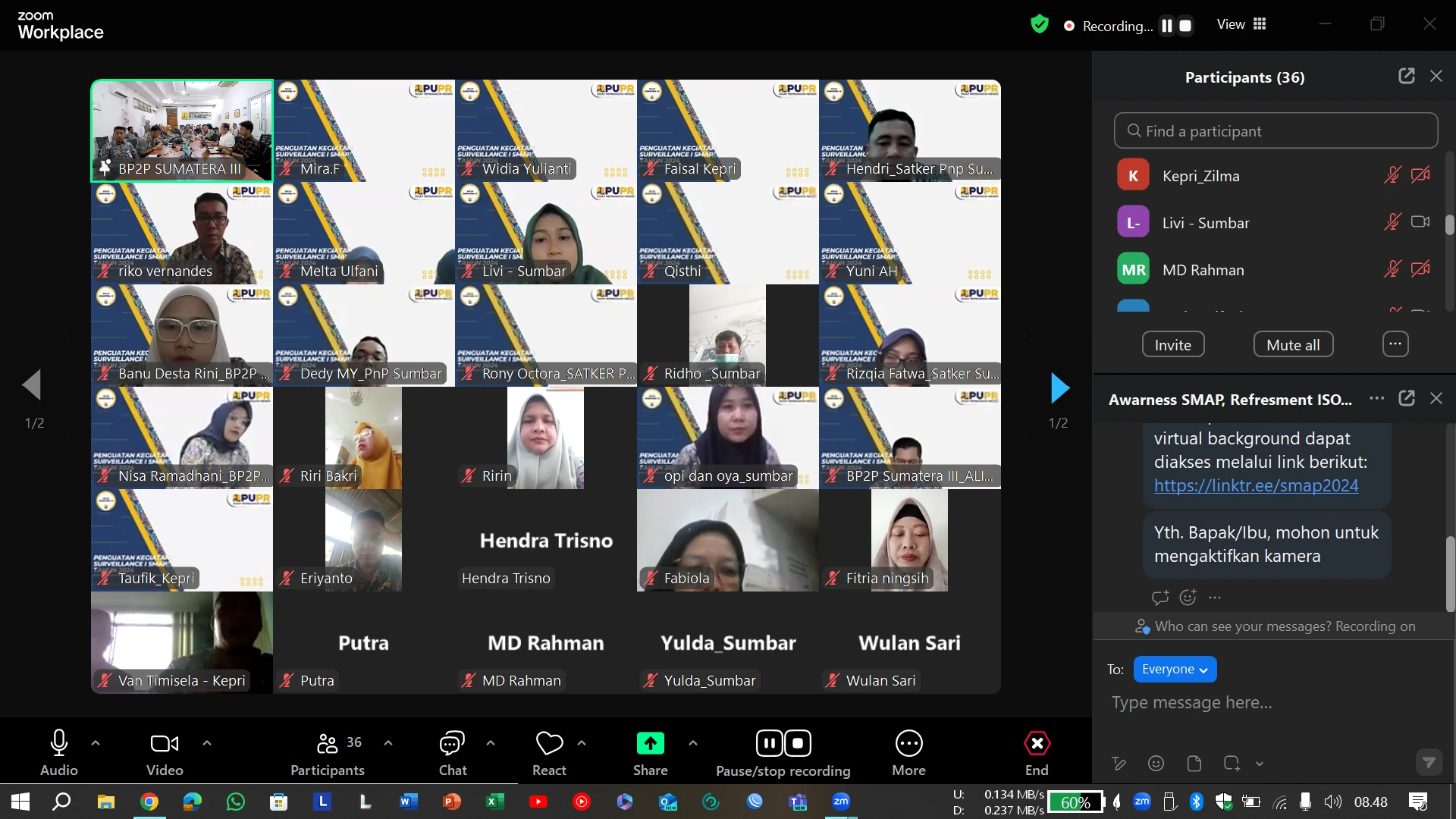 Acara dihadiri oleh seluruh pegawai Balai P2P Sumatera III dan Satker Penyediaan Perumahan Provinsi Riau secara luring, Satker Penyediaan Perumahan Provinsi Sumatera Barat dan Satker Penyediaan Perumahan Provinsi Kepulauan Riau secara daraing. Kepala Balai P2P Sumatera III, Ir. Aldino Herupriawan, ST. MT. CROP. memberikan arahan " melaksanakan Sistem Manajemen Anti Penyuapan (SMAP) dalam proses pembangunan dan penyelenggaraan perumahan untuk masyarakat sebagai upaya mitigasi risiko, penguatan tata kelola administrasi sekaligus meningkatkan pelayanan kepada masyarakat dan menjamin kualitas hasil pembangunan hunian." kegiatan surveillance I untuk memastikan pelaksanaan SMAP di Balai P2P berjalan dengan baik.
