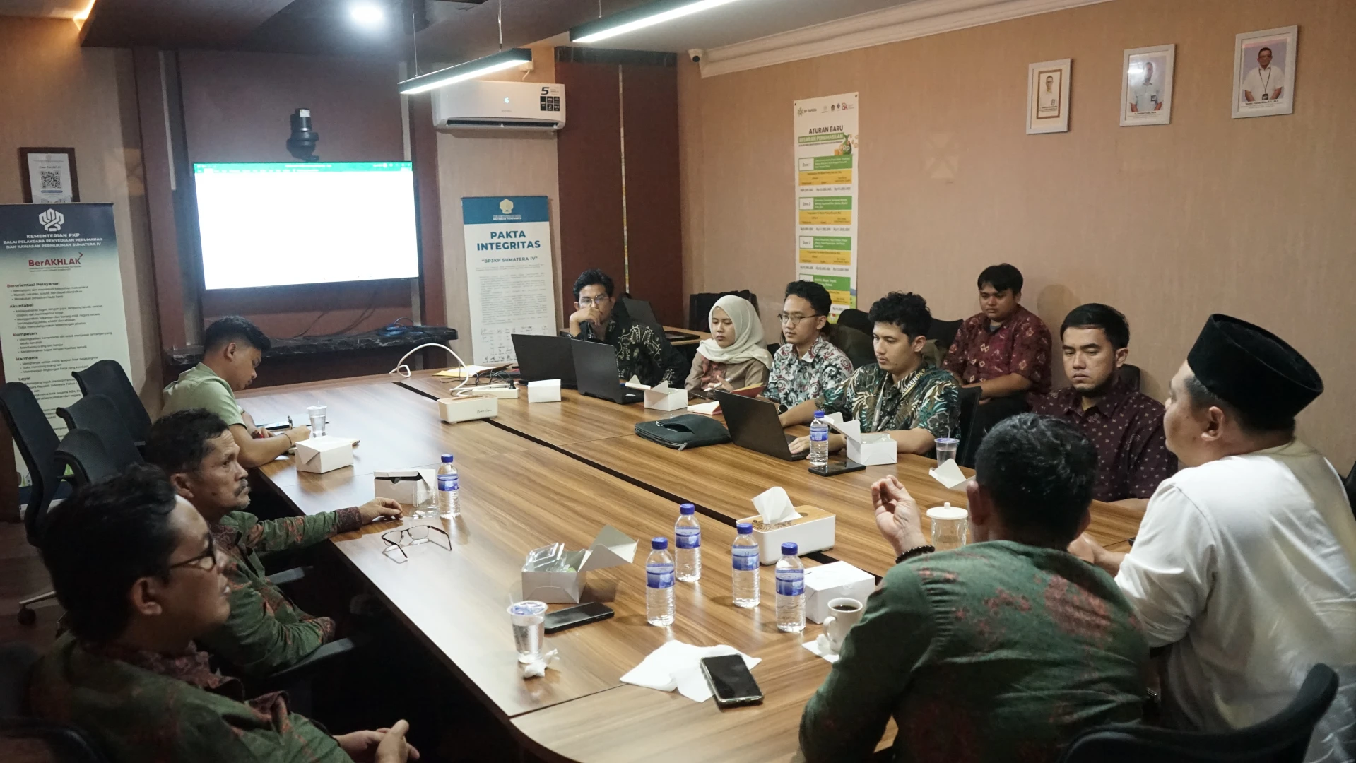 Balai Pelaksana Penyediaan Perumahan dan Kawasan Permukiman (P3KP) Sumatera IV menerima kunjungan dan silaturahmi Wakil Bupati Bungo, Bapak Tri Wahyu Hidayat di Kantor Balai P3KP Sumatera IV. Kunjungan ini dilaksanakan dalam rangka silaturahmi dan koordinasi terkait programprogram Kementerian Perumahan dan Kawasan Permukiman (PKP), khususnya Program Tiga Juta Rumah. Dalam pertemuan tersebut, dibahas berbagai kebijakan dan arah pelaksanaan program Kementerian PKP yang bertujuan untuk meningkatkan akses masyarakat terhadap hunian yang layak serta mendukung penataan kawasan permukiman yang berkelanjutan. Program Tiga Juta Rumah menjadi salah satu fokus utama pembahasan, mengingat perannya yang strategis dalam mendukung penyediaan perumahan bagi masyarakat berpenghasilan rendah. Selain membahas program, pertemuan ini juga menekankan pentingnya kesiapan Pemerintah Kabupaten Bungo dalam mendukung pelaksanaan program agar berjalan optimal dan tanpa hambatan. Beberapa hal yang perlu dipersiapkan antara lain kelengkapan data dan dokumen pendukung, kesiapan lahan, dukungan kelembagaan dan sumber daya manusia, serta penguatan koordinasi lintas sektor. Wakil Bupati Bungo menyampaikan harapan agar Kabupaten Bungo dapat melakukan persiapan secara optimal sehingga pelaksanaan program Kementerian PKP dapat berjalan efektif dan memberikan manfaat nyata bagi masyarakat. Balai P3KP Sumatera IV menyambut baik kunjungan tersebut sebagai bentuk penguatan sinergi antara pemerintah pusat dan daerah. Melalui koordinasi yang berkelanjutan, diharapkan implementasi Program Tiga Juta Rumah di Kabupaten Bungo dapat berjalan sesuai dengan ketentuan.