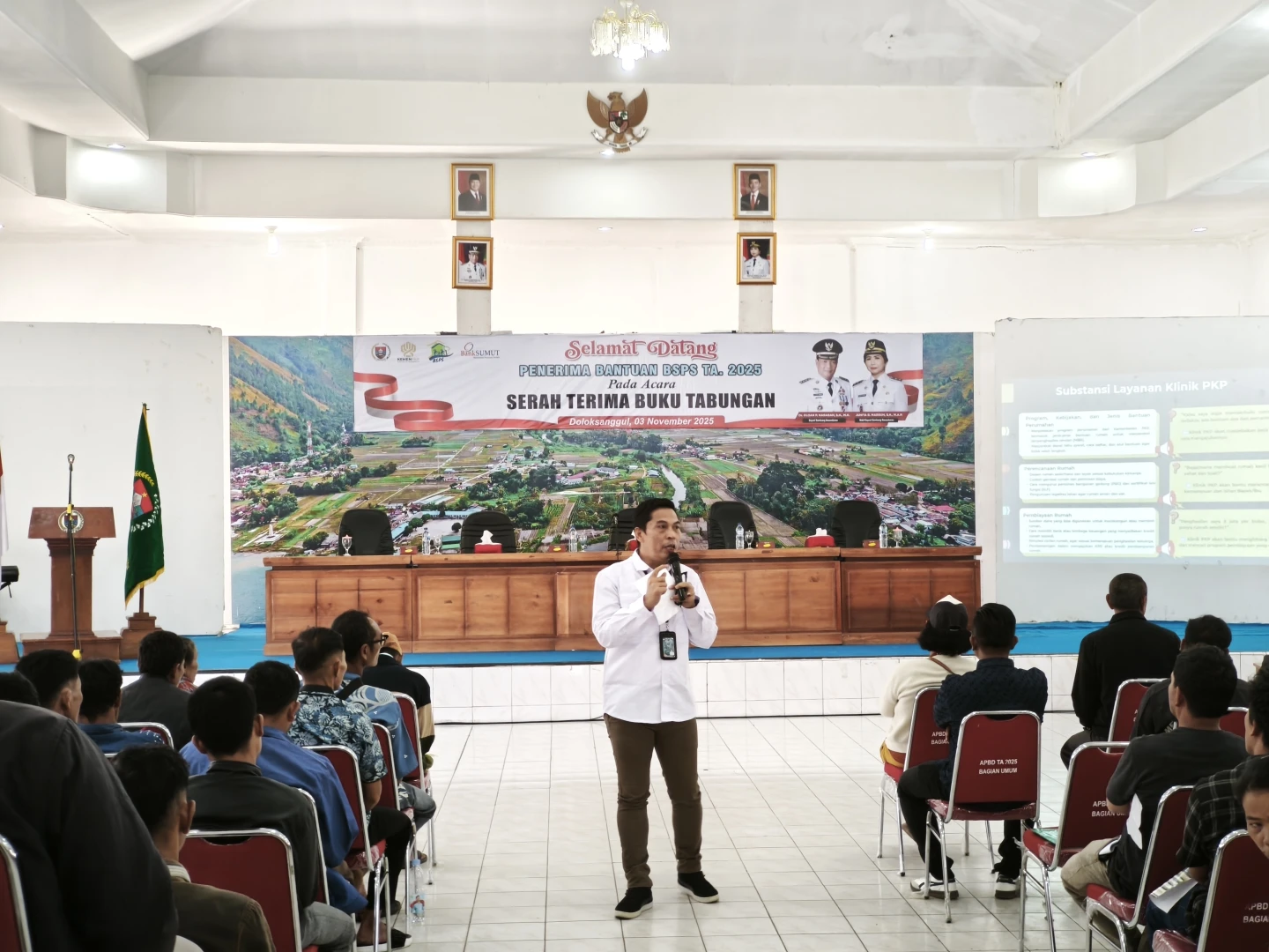 Doloksanggul, 3 November 2025 — Dinas Perumahan dan Kawasan Permukiman Kabupaten Humbang Hasundutan melaksanakan kegiatan Serah Terima Buku Tabungan Program Bantuan Stimulan Perumahan Swadaya (BSPS) Tahun 2025, bertempat di Aula Hutamas, Kecamatan Doloksanggul. Kegiatan ini merupakan bagian dari upaya pemerintah dalam meningkatkan akses masyarakat terhadap hunian layak huni melalui program stimulan pembangunan rumah secara swadaya.