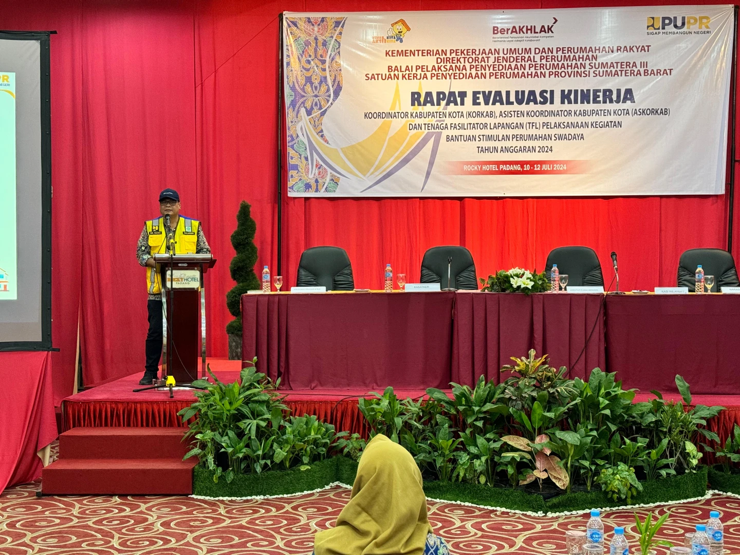 Kota Padang, Sumatera Barat – Kementerian Pekerjaan Umum dan Perumahan Rakyat melakukan evaluasi terhadap pelaksanaan kegiatan Program Bantuan Stimulan Perumahan Swadaya (BSPS) yang dilaksanakan di Provinsi Sumatera Barat. Pejabat Pembuat Komitmen (PPK) Rumah Swadaya dan RUK di Provinsi Sumatera Barat diharapkan untuk selalu memantau kinerja dari para Tenaga Fasilitator Lapangan (TFL) maupun Koordinator dan asisten koordinator Kabupaten / Kota nya,mulai dari sosialisasi,penunjukan supleir bahan bangunan pelaksanaan fisik hingga pelaporan.