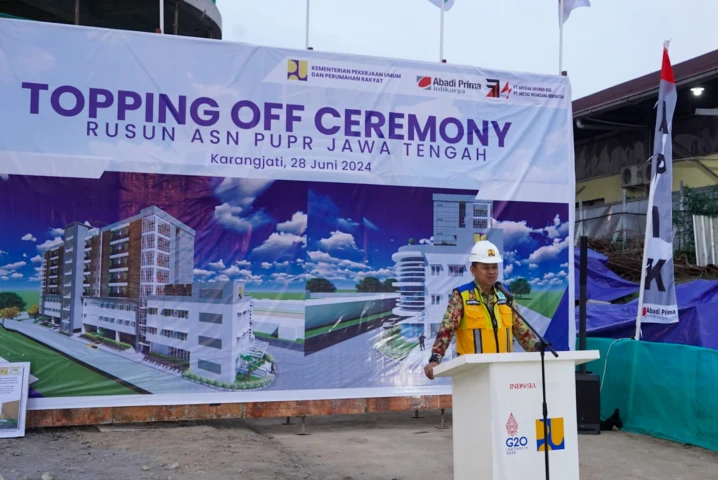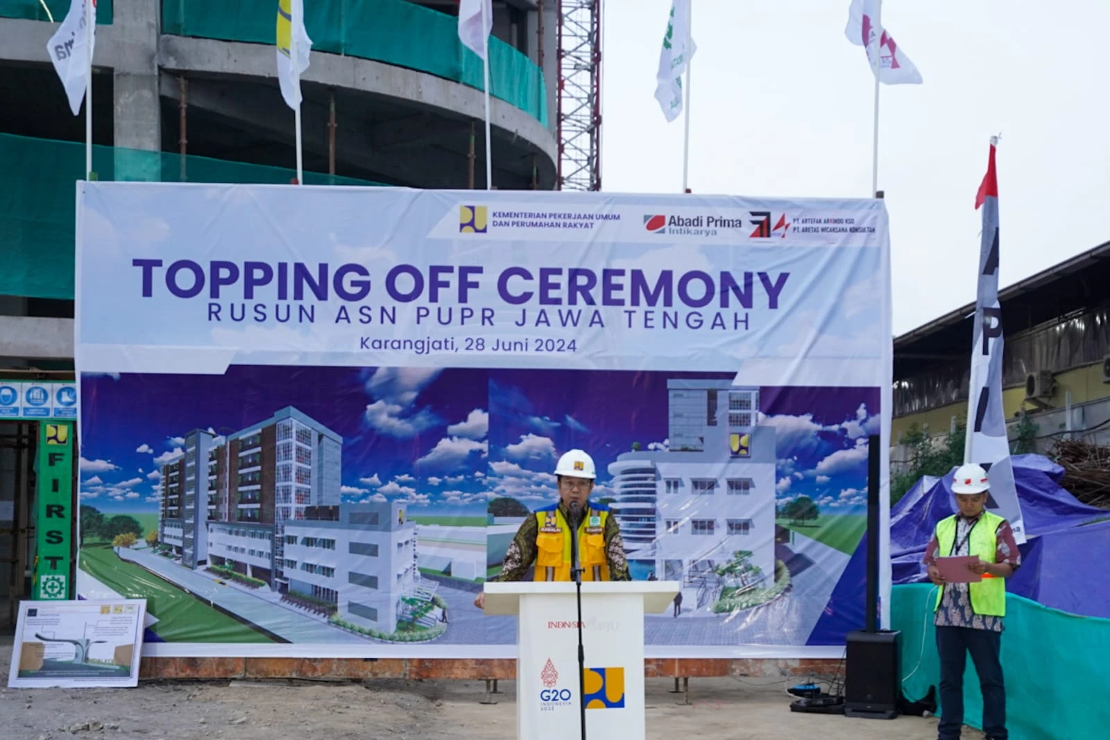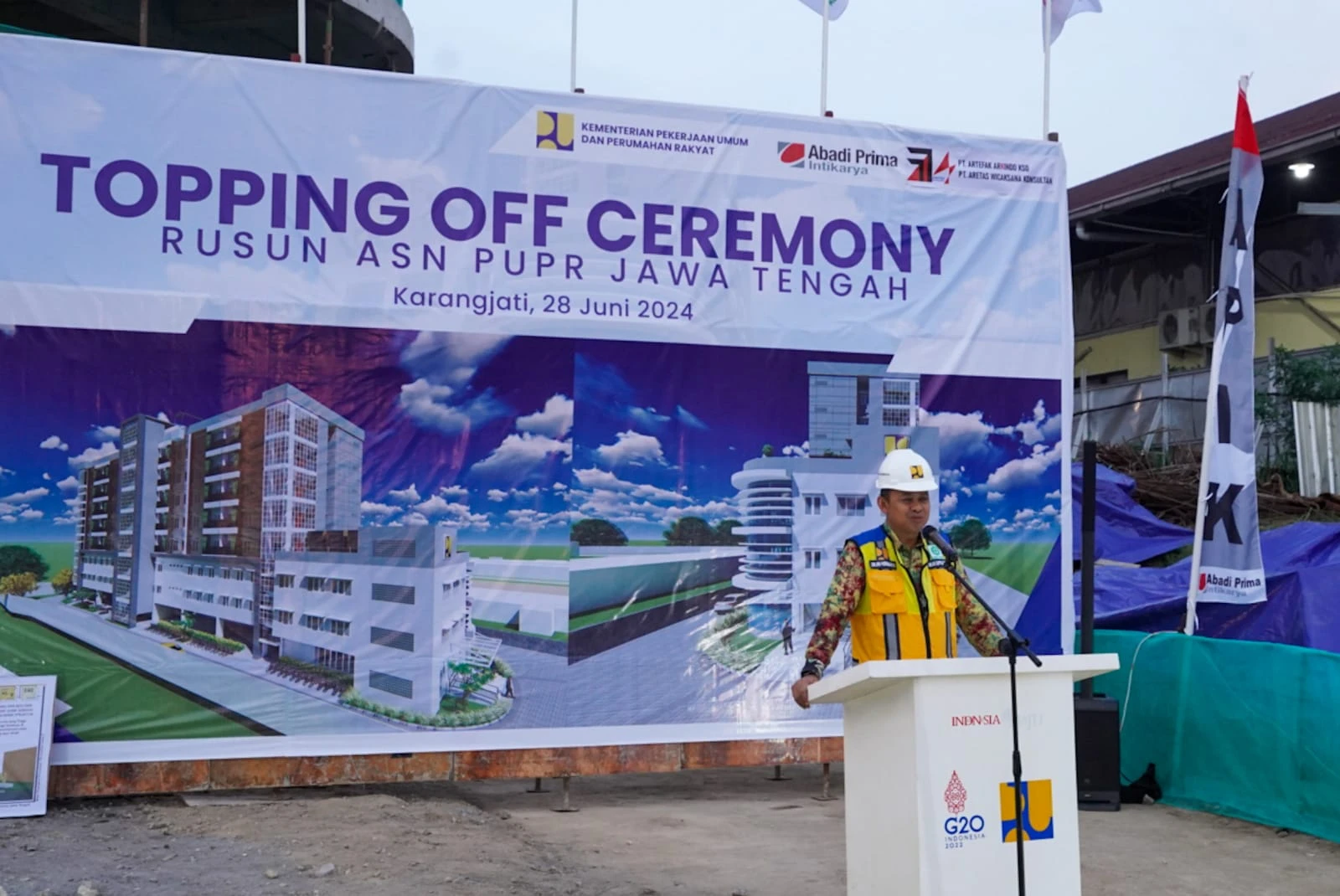 "Hari ini kami melakukan topping off Rusun ASN PUPR di Jawa Tengah. Kegiatan ini juga menandai berakhirnya kegiatan proses konstruksi struktur dan memasuki tahap penyelesaian akhir atau finishing," ujar Direktur Jenderal Perumahan Kementerian PUPR, Iwan Suprijanto usai melakukan prosesi Topping Off Rusun ASN PUPR di Jawa Tengah, Jum'at (28/6/2024).