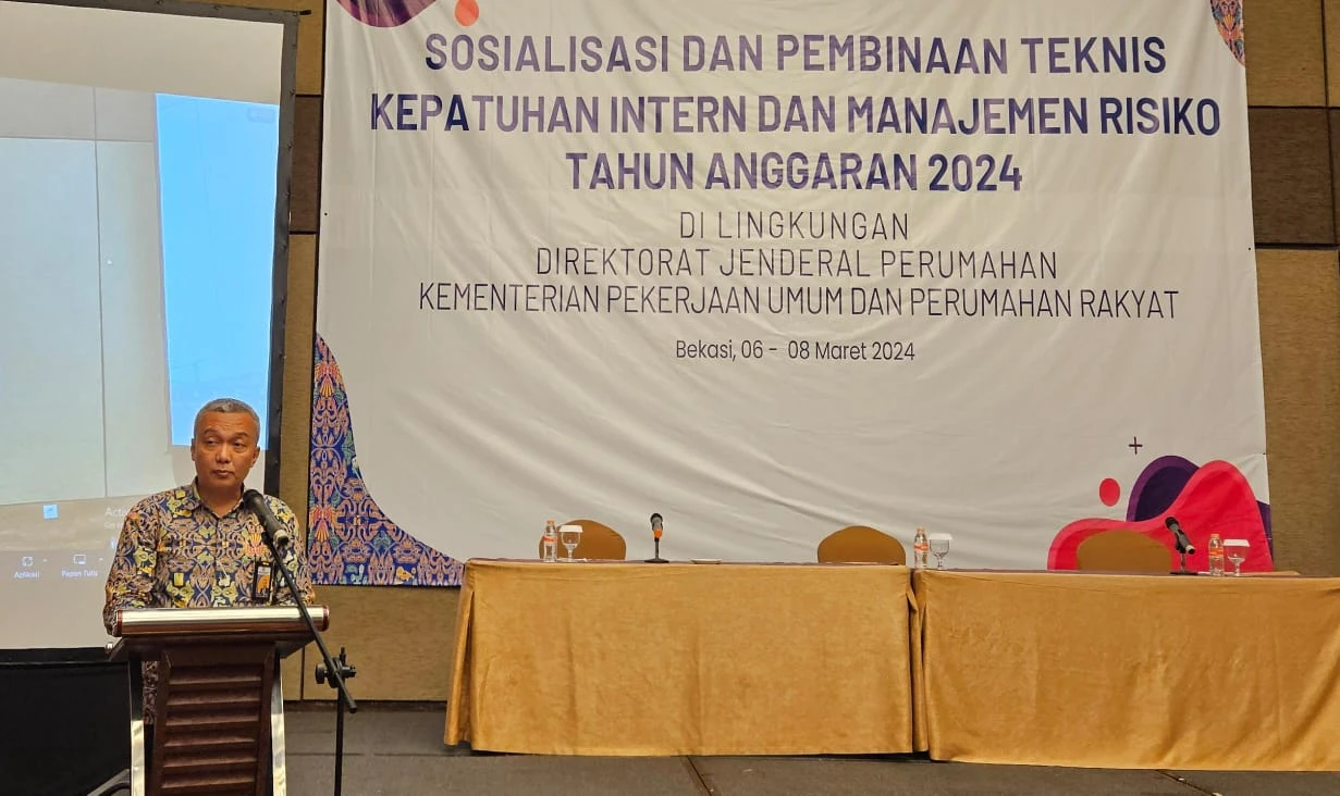 "Dalam pelaksanaan pembangunan perumahan untuk masyarakat juga memerlukan keseriusan dari kita bersama dalam mewujudkan penerapan kepatuhan intern dan manajemen risiko di lingkungan Ditjen Perumahan Kementerian PUPR agar dapat berjalan dengan baik," ujar Direktur Kepatuhan Intern Direktorat Jenderal Perumahan Kementerian PUPR, Firsta saat membuka kegiatan Sosialisasi dan Pembinaan Teknis Kepatuhan Intern dan Manajemen Risiko Tahun Anggaran 2024 di Kota Bekasi, Jawa Barat, Rabu (6/3/2024).