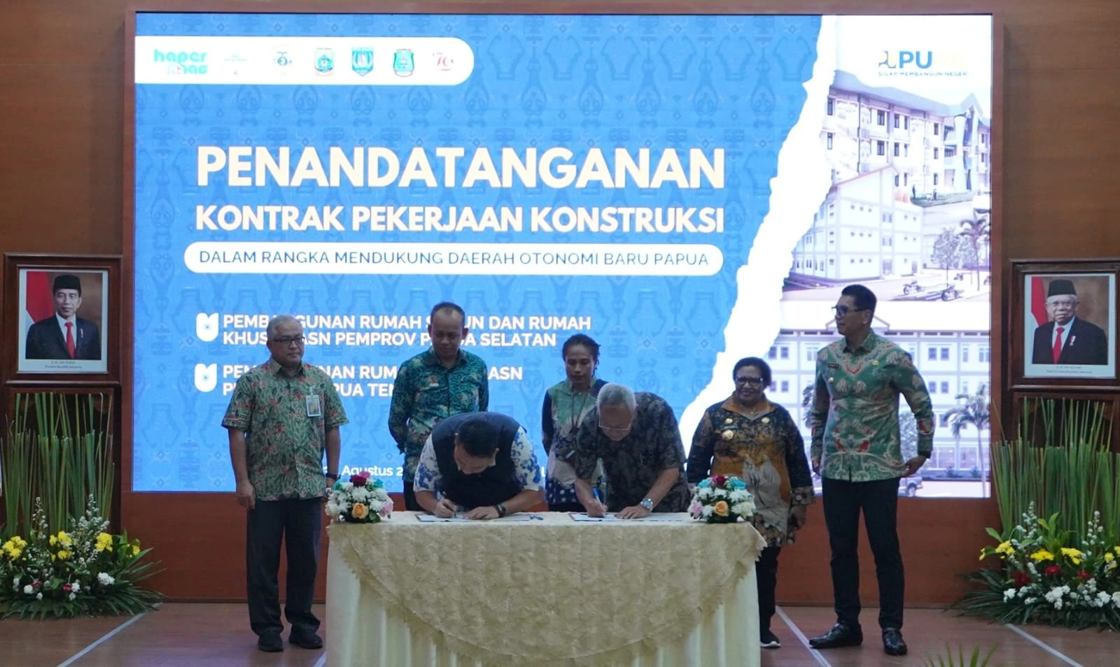 Pada kesempatan itu, Penandatanganan Kontrak Pekerjaan Konstruksi Dalam Rangka Mendukung Daerah Otonomi Baru (DOB) Papua dilaksanakan secara langsung oleh Pejabat pembuat Komitmen (PPK) Rumah Susun dan Rumah Khusus Provinsi Papua, Second Michal Sopranita Maria Elisabeth Worabai, S.T. dengan perwakilan PT. Nindya Karya (Persero) dan PT. Djasa Uber Sakti Tbk disaksikan Pejabat Tinggi Pratama dan Pejabat Tinggi Madya di Kementerian PUPR serta PJ Gubernur.