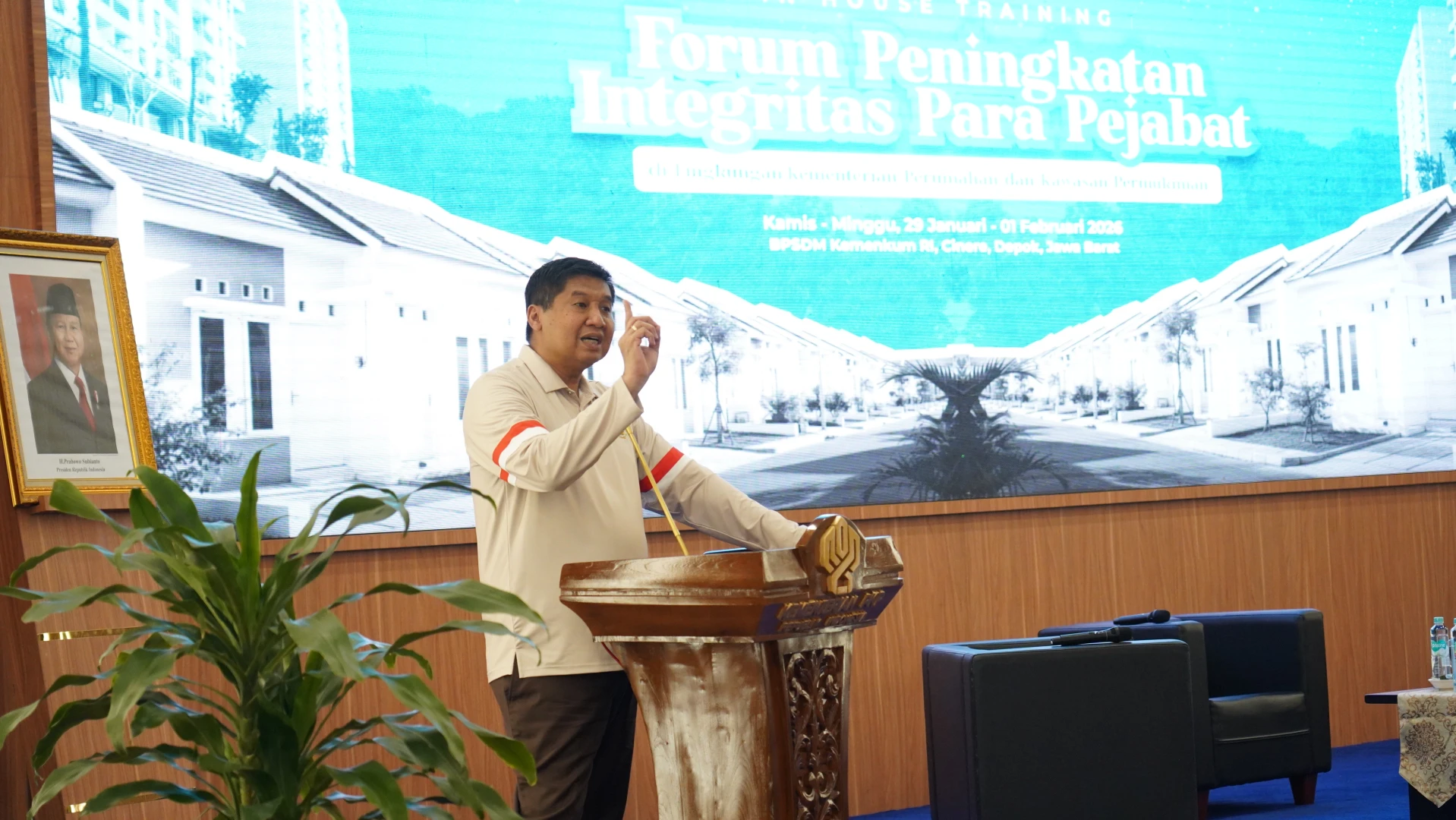 Depok - Kementerian Perumahan dan Kawasan Permukiman (PKP) menggelar Forum Peningkatan Integritas Pejabat sebagai upaya memperkuat tata kelola pemerintahan yang bersih, transparan, dan akuntabel, sekaligus membangun budaya kerja kolaboratif dalam pelaksanaan program perumahan dan kawasan permukiman di Depok, Minggu (1/2/2026).
